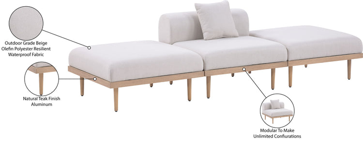 Laguna - 3 Piece Resilient Water Resistant Fabric Outdoor Patio Modular Sofa - Beige