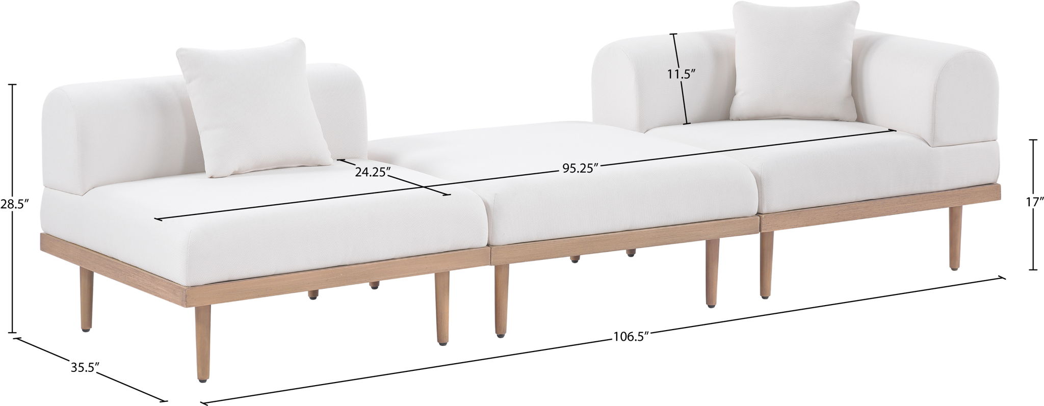 106.5"W x 35.5"D x 28.5"H - 170.0 lb