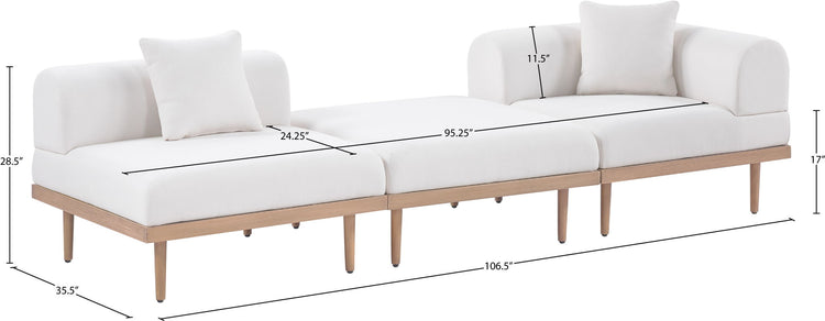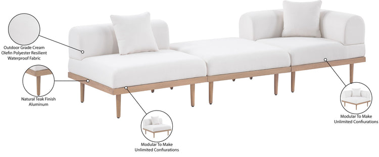 Laguna - 3 Piece Resilient Water Resistant Fabric 106.5" Outdoor Patio Modular Sofa - Cream