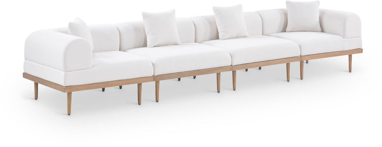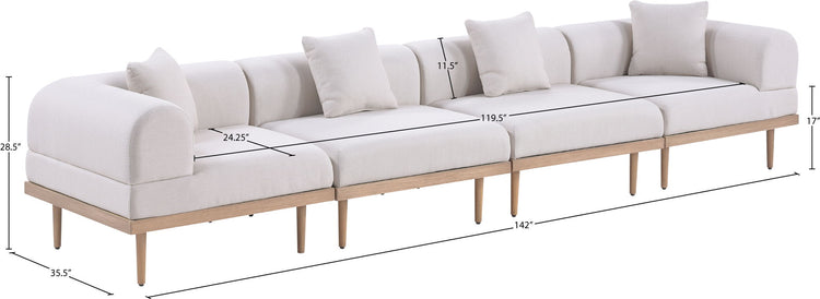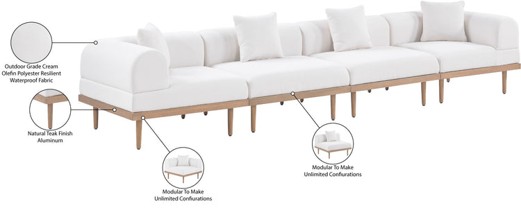 Laguna - 4 Piece Resilient Water Resistant Fabric 142" Upholstered Outdoor Patio Modular Sofa - Cream