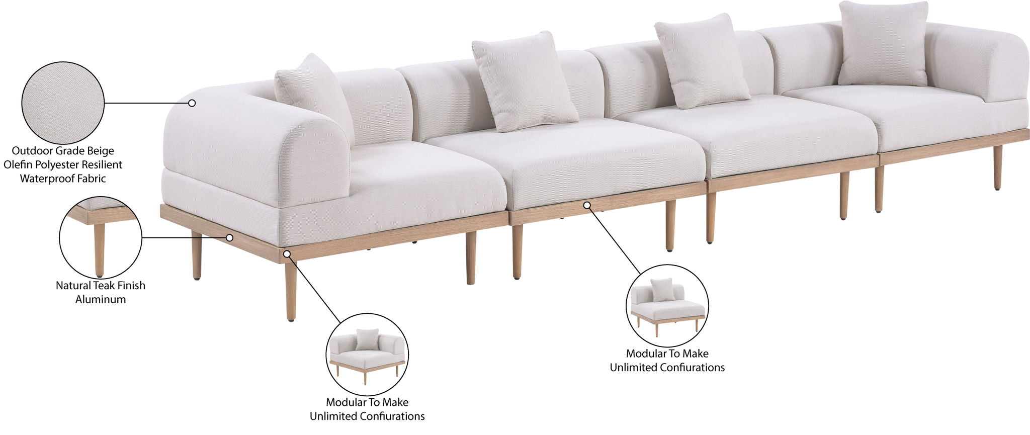 Laguna - 4 Piece Resilient Water Resistant Fabric 142" Upholstered Outdoor Patio Modular Sofa - Beige