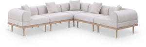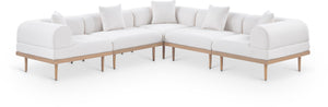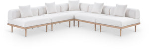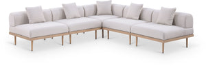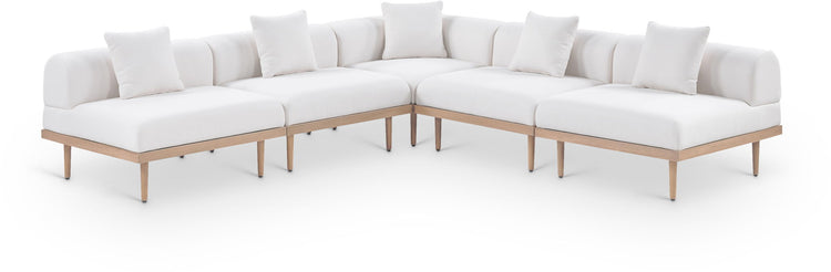 Laguna - 5 Piece Resilient Water Resistant Fabric 142" Upholstered Outdoor Patio Modular Sectional - Cream