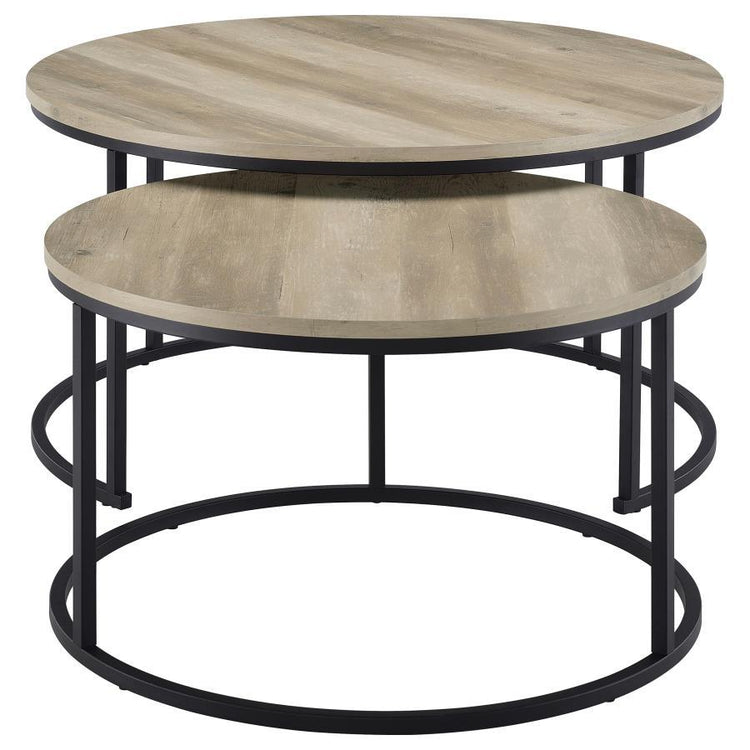 Lainey - 2 Piece Round Nesting Coffee Table - Distressed Pine