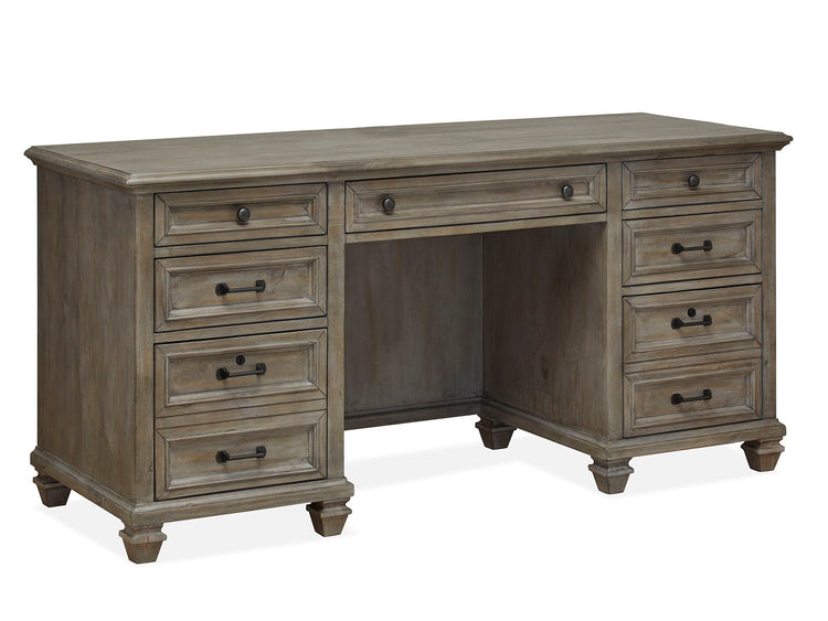 Seeking refined design and casual and rustic appeal in simply useful office pieces? Lancaster, crafted of Pine solids with handsome beaded panels in an updated Dovetail Grey finish and by Weathered Bronze pulls is the ideal solution. The desk; offered with optional hutch and lateral file have overhung tops and bead frame drawers with nicely shaped turned legs at the base. Crisp and updated, the open writing desk features a triangular open base with handsome cross supports that is repeated in the open bookcase while a glass door bookcase and fully upholstered swivel chair will support endless hours of productive home based work for any relaxed setting.