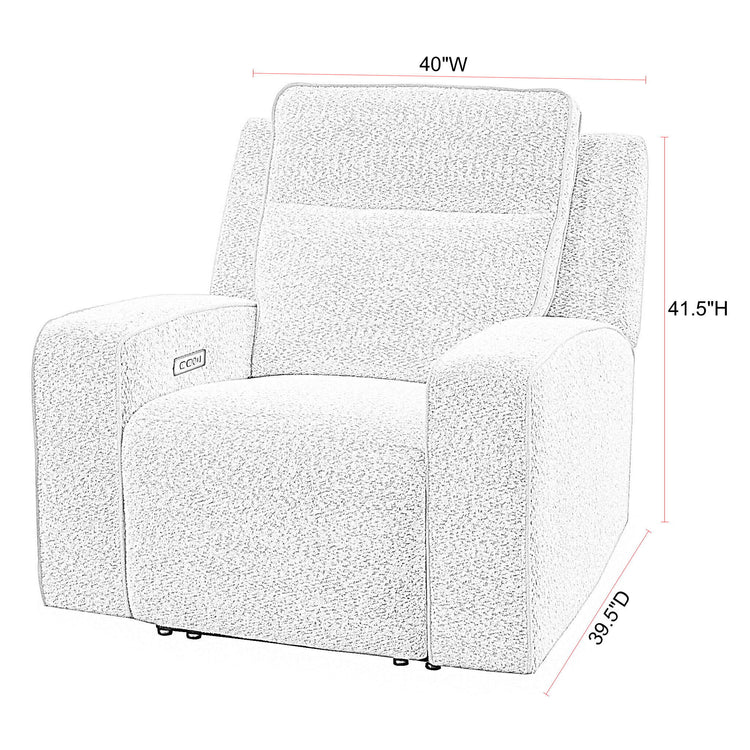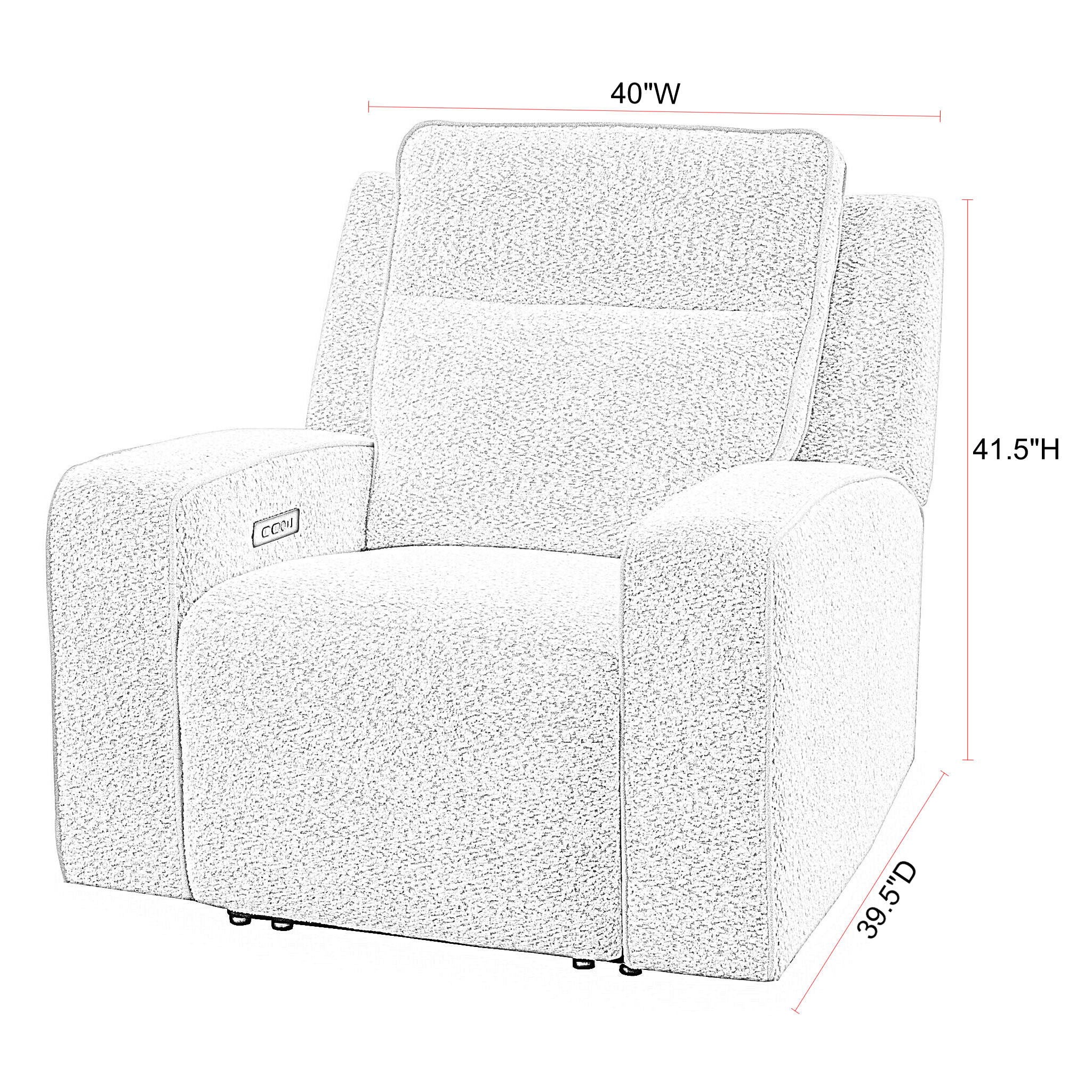 - Power recline switch includes a USB and a USB-C port and a “Home” button to bring all positions back to upright seating