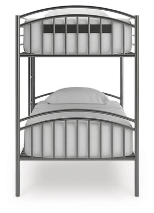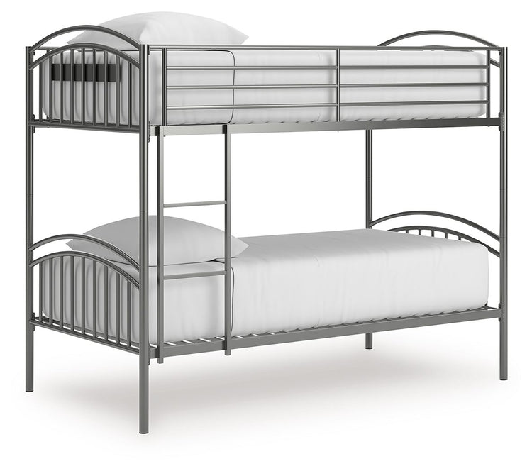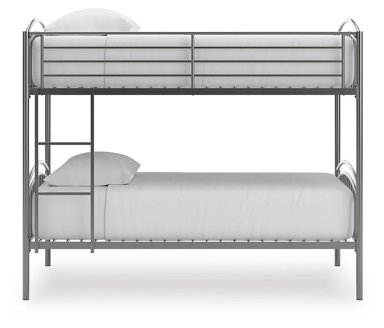 Save space and let little ones snooze in style. This bunk bed's steel gray finish pairs with a variety of colors and aesthetics. Its ladder position adjusts to the left or right side to suit a bedroom's layout. And the bed is adaptable to your family's changing needs, with the ability to convert from a bunk bed to two individual twin beds.