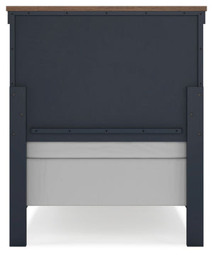 Landocken - 8 Pc. - Dresser, Mirror, Chest, Twin Panel Bed, 2 Nightstands - Brown / Blue