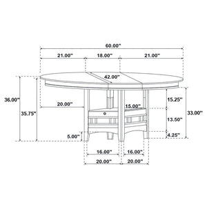 Stylish and sophisticated, this dining set is perfect for small spaces. Warm up a neutral room with the warmth of rich hues. Fold down the leaf to welcome more family and friends. Store dinnerware in the built-in storage unit on the base of the counter height table to accommodate guests easily. The smooth legs of the table and four stools invite an open feel into a modern entertainment room.