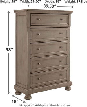 Lettner - 6 Pc. - Dresser, Mirror, Chest, King Sleigh Bed with 2 Storage Drawers - Light Gray