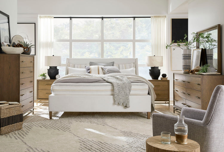Lindon - Complete King White Upholstered Island Bed - Belgian Wheat