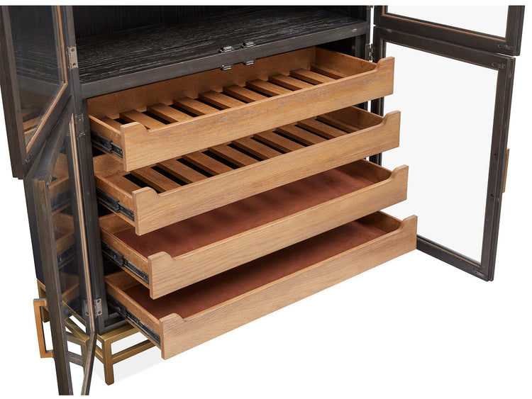 - 2 Felt Lined Drawers Behind 2 Bottom Wood Framed Tempered Glass Doors