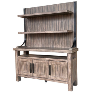 Lodge Dining - Counter Table With 2 Sling Stools 2 X-Back Stools 1 Bench Buffet With Hutch - Siltstone