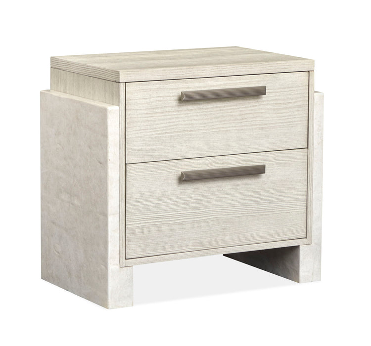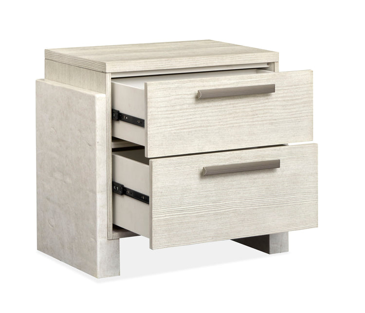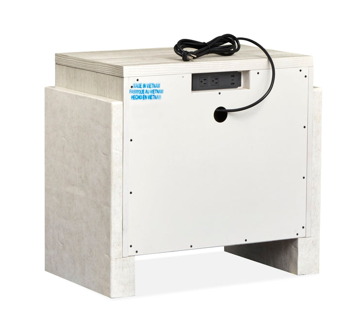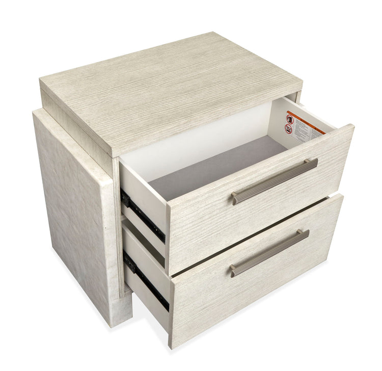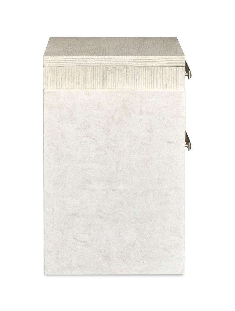 The Lorelei is the perfect addition to any modern contemporary home. With sleek resin end panels and it combines durability with striking visual appeal. The Misty Cloud finish and heavy wire-brushed quarter pine veneer and and embossed MDF are paired with resin and satin bucket hardware for a sophisticated look. Its contemporary design effortlessly enhances modern interiors and adding a fresh and stylish touch. Made from high-quality hardwood solids and durable materials and the Lorelei promises lasting beauty and functionality.