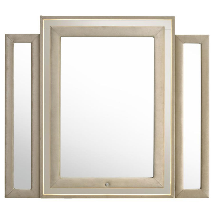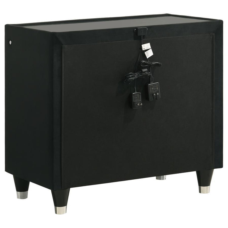 Unite form and function in this bedroom set, where sculpted glamour meets modern refinement. Each piece is wrapped in velvet with quilted textures, crystal knobs, and reflective acrylic accents. The dresser features a clear tempered glass top and LED case lighting without the fireplace insert. Combined with the LED wingback bed, USB nightstand, and tri-panel mirror, the set delivers soft sophistication with everyday practicality.