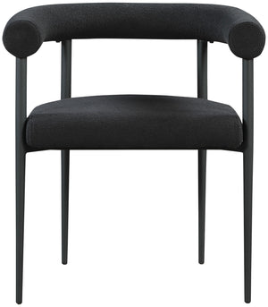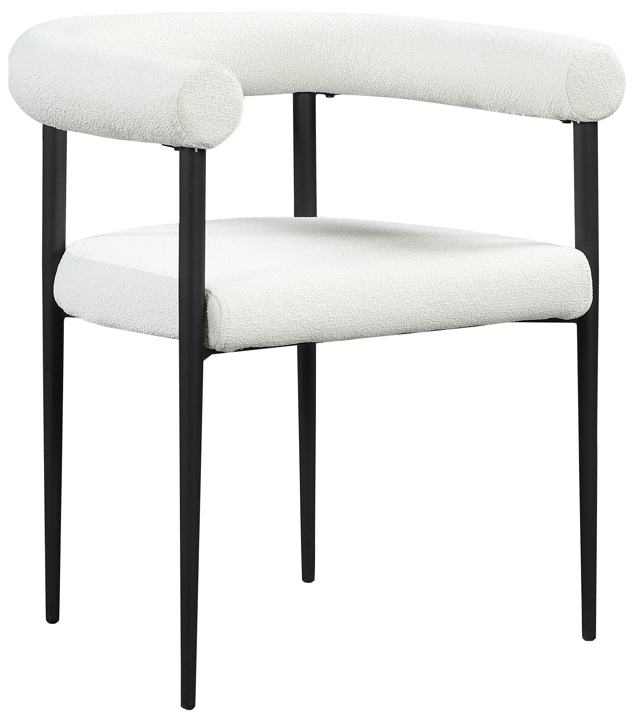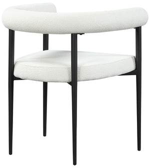 Bring home this Louie boucle fabric dining chair to add a touch of modern fun and sophistication to your space. This dining chair is the perfect addition to your up-to-the-minute dining area, with its curved back and eye-grabbing overall aesthetic. Rich boucle fabric covers the seat and back, giving it a luxe look. An all-metal frame adds sturdy stability and resilient durability, ensuring lasting use in your home.