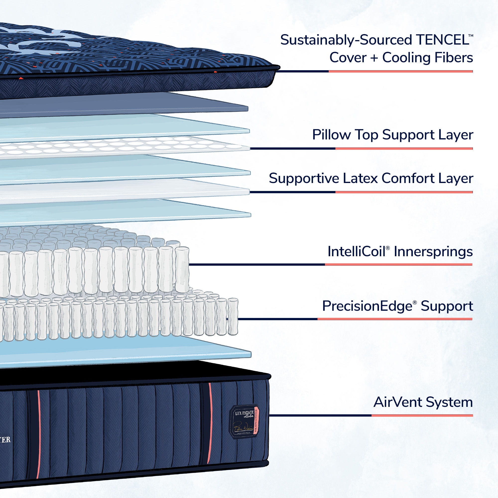 The Stearns & Foster Lux Estate Elite provides an elevated level of comfort with its plush Euro Pillow Top support layer and the added benefit of features to help keep you cool all night long.