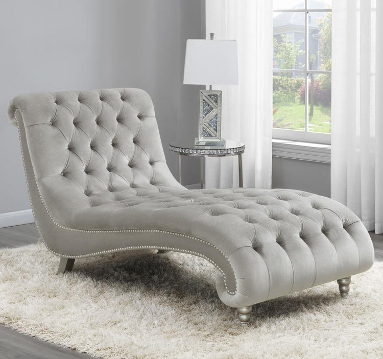 Lydia - Velvet Upholstered Tufted Chaise - Gray