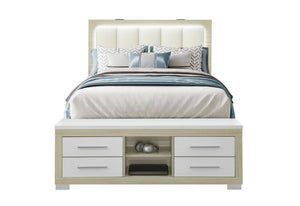 Madison - Queen Bed Headboard With LED, USB, Bluetooth Speaker - Natural / White