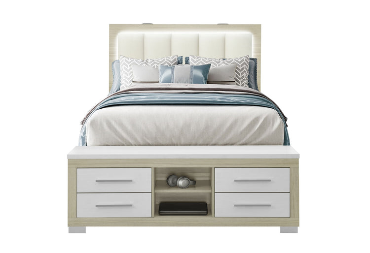 Madison - Queen Bed Footboard With 2 Drawers And 1 Shelf - Natural / White