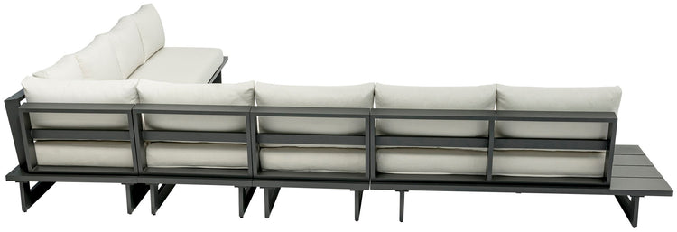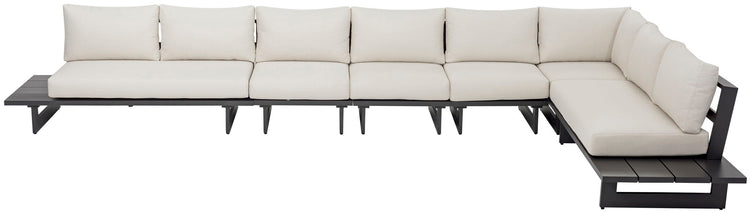 Maldives - 6 Piece Water Resistant Outdoor Patio Modular Left Arm Facing Sectional With Gray Base - Cream