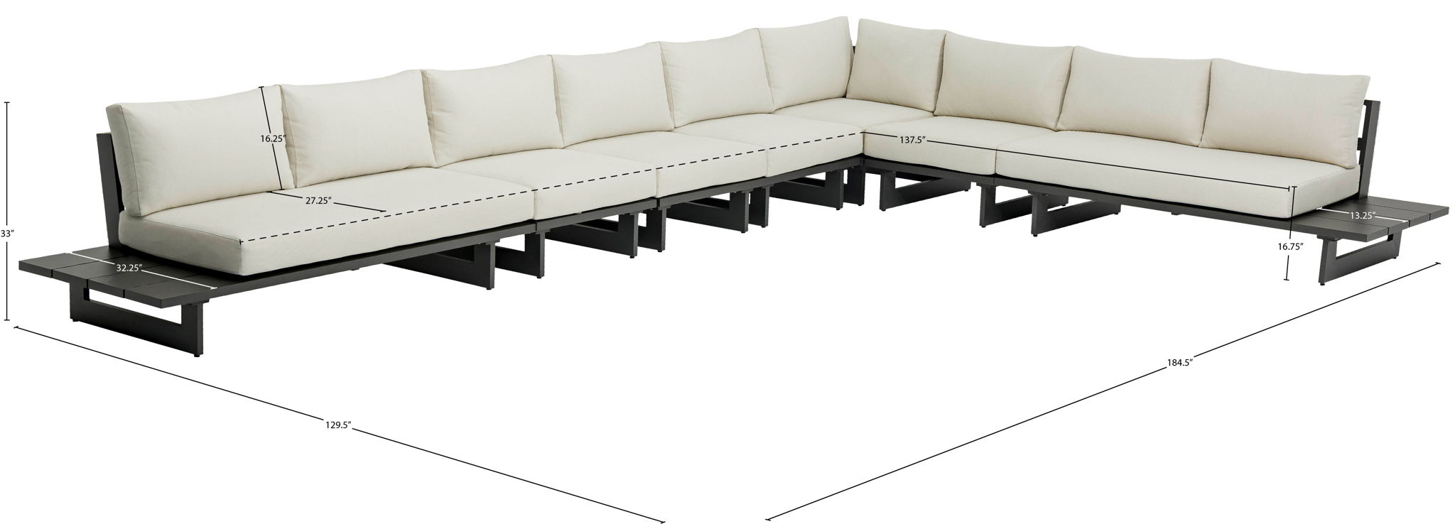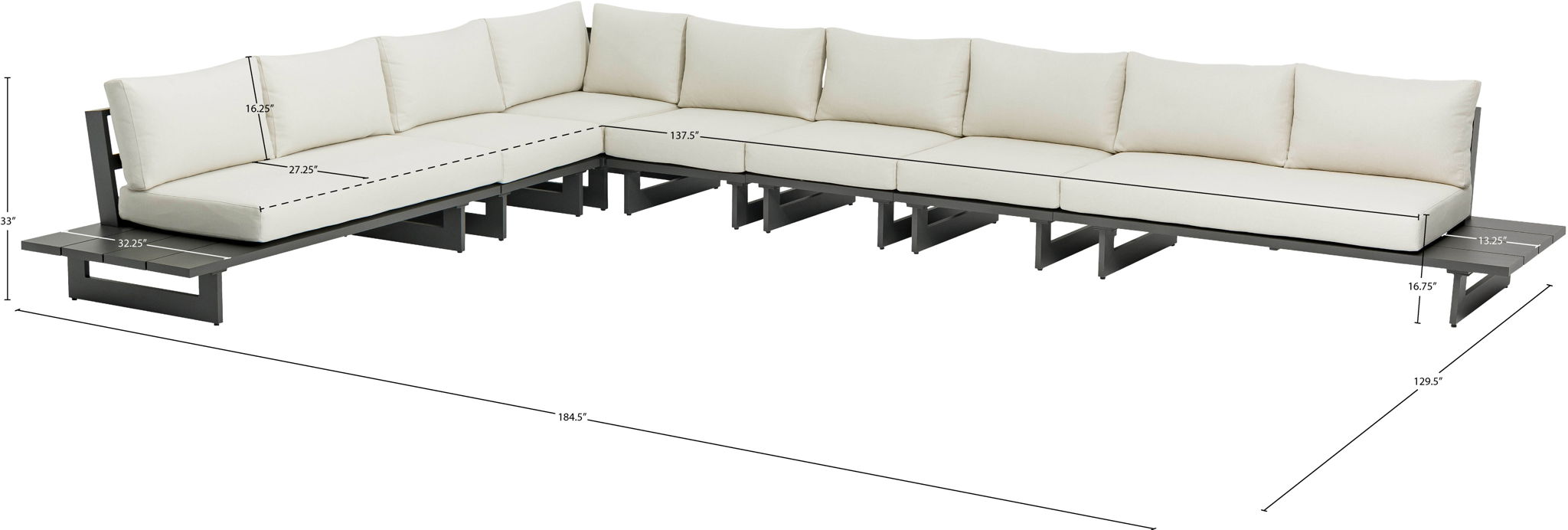 184.5"W x 129.5"D x 33.0"H - 403.0 lb