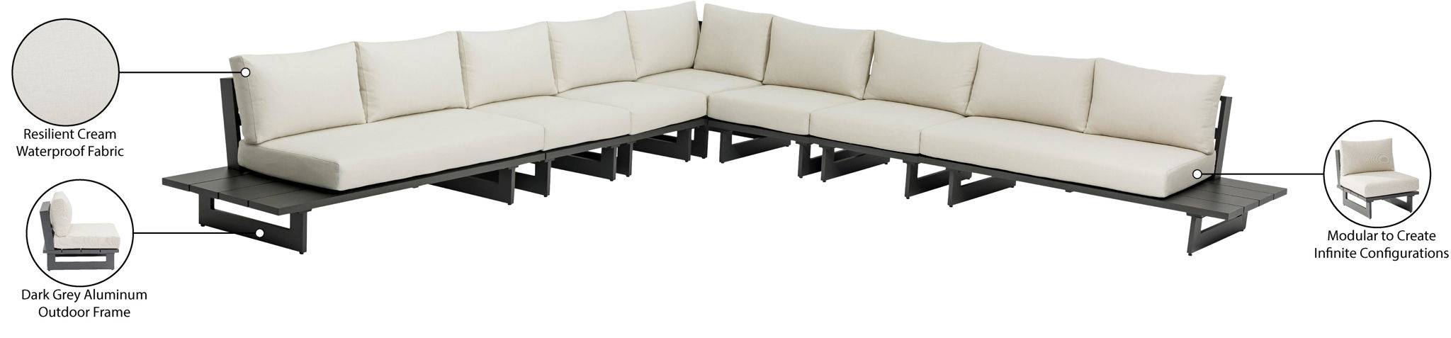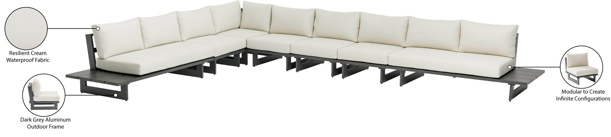 Maldives - 7 Piece Water Resistant Outdoor Modular Sectional With Gray Base - Cream