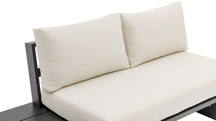 Create your own custom contemporary look on the deck or porch with the addition of this Maldives outdoor patio armless chair. Part of a large collection that lets you mix and match modular pieces to get the look you crave most. This modular sectional has water resistant fabric with a base made from grey aluminum, so it's sturdy, tough, and ready to face the elements with impeccable beauty, season in and season out. Shop the contemporary pieces in this collection to create the outdoor entertaining area of your dreams.