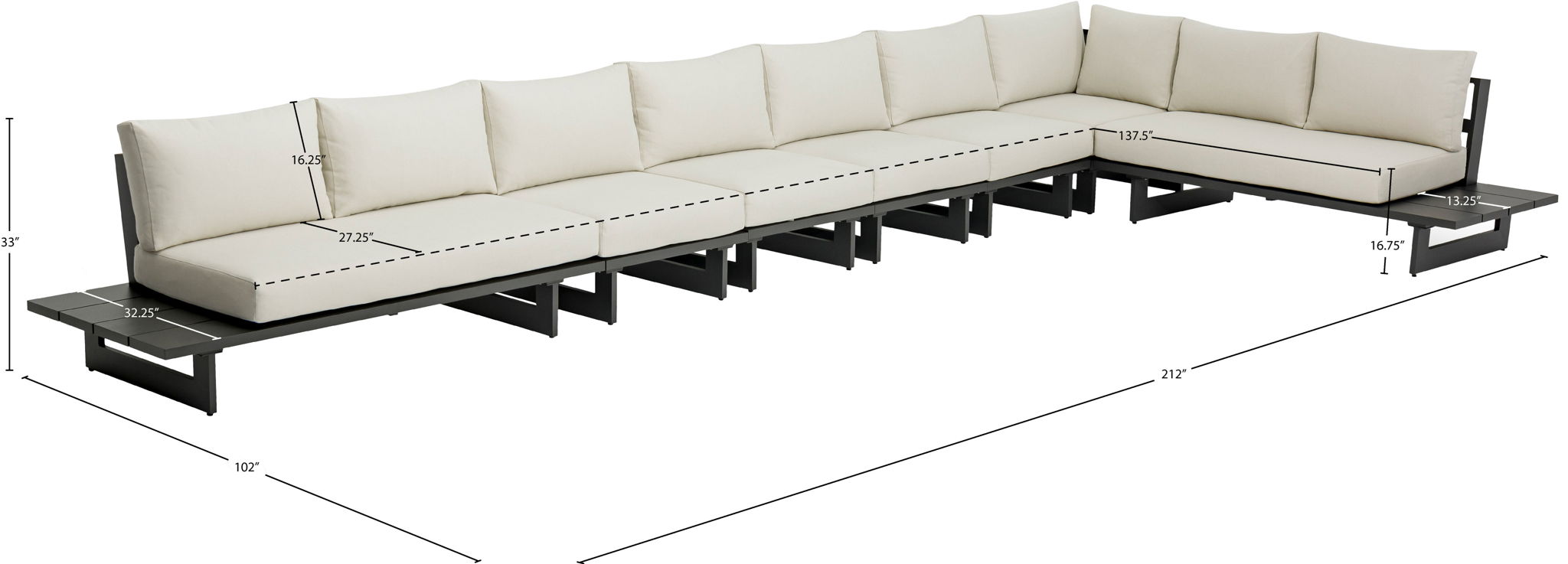 212.0"W x 102.0"D x 33.0"H - 403.0 lb