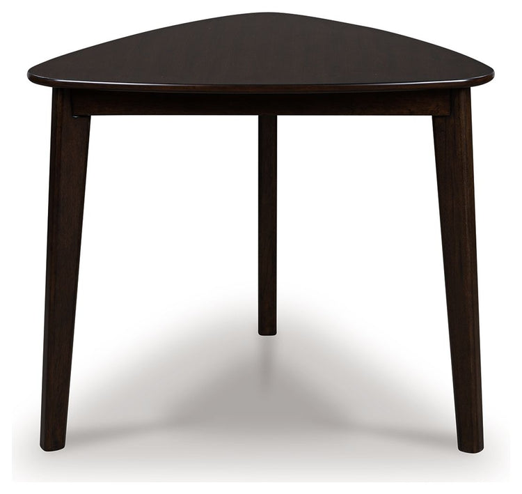 This dining table adds a dash of retro-inspired flair to morning breakfasts and family dinners. A rich merlot finish captures the feel of metropolitan aesthetics. Complete with soft curves and tapered legs, it's a chic reflection of your mid-century-meets-casual taste.