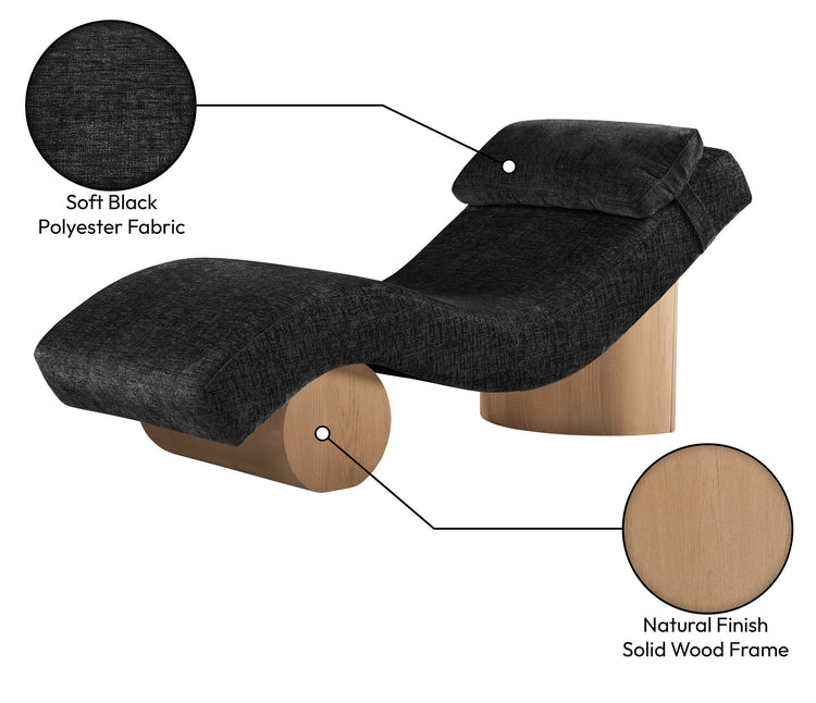 Sculptural curves and plush polyester give Marcella a bold, art deco vibe that demands attention. Anchored by a natural wood base, this chaise lounge is the perfect spot to stretch out in style. With its striking silhouette, it's more than just a seat - it's a statement.