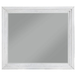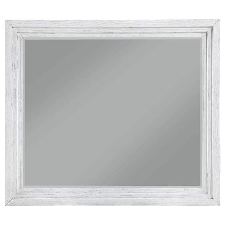 Augment a stylish bedroom setting with a transitional framed dresser mirror. It's the perfect complement to a relaxed bedroom ensemble, offering reflectivity and brightness while complementing decor. The mirror boasts a decorative frame and beveled glass, adding to its timeless character. The frame is crafted in wood with a tiered trim design that creates a stylish sense of depth. its distressed white finish is soothing and simple, complementing a variety of settings.