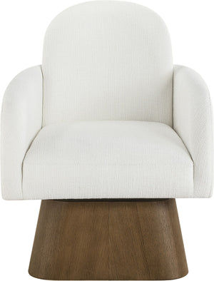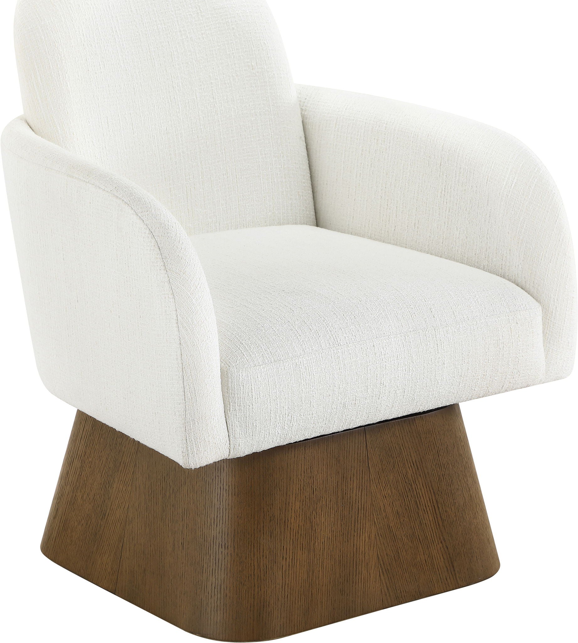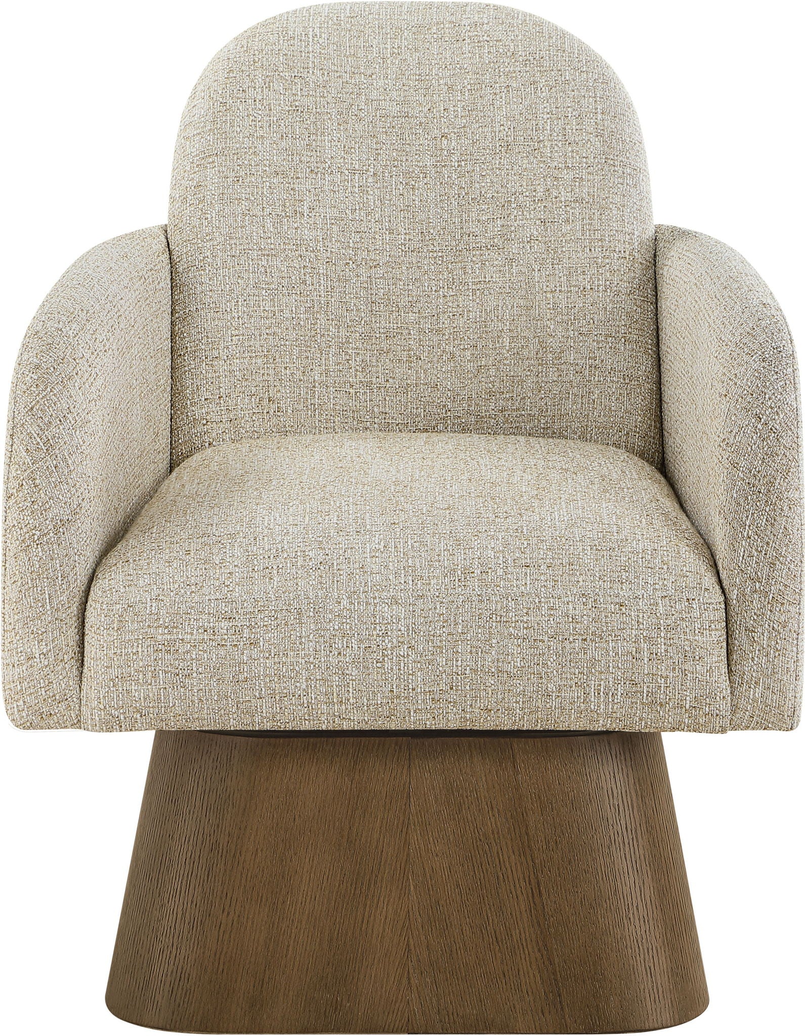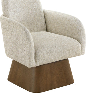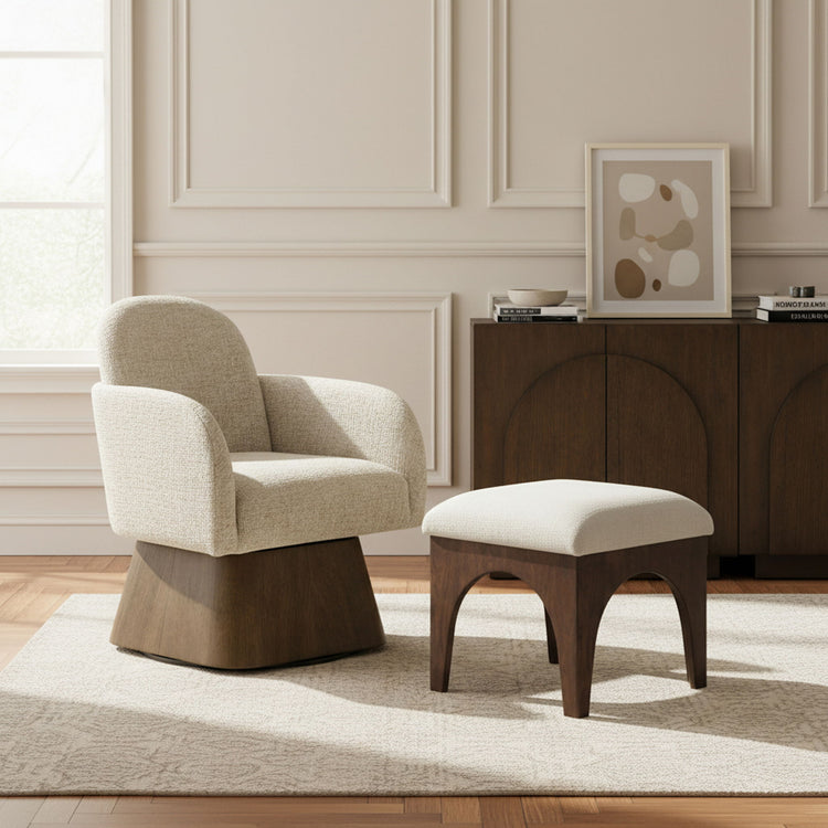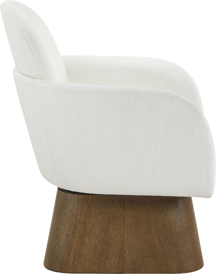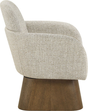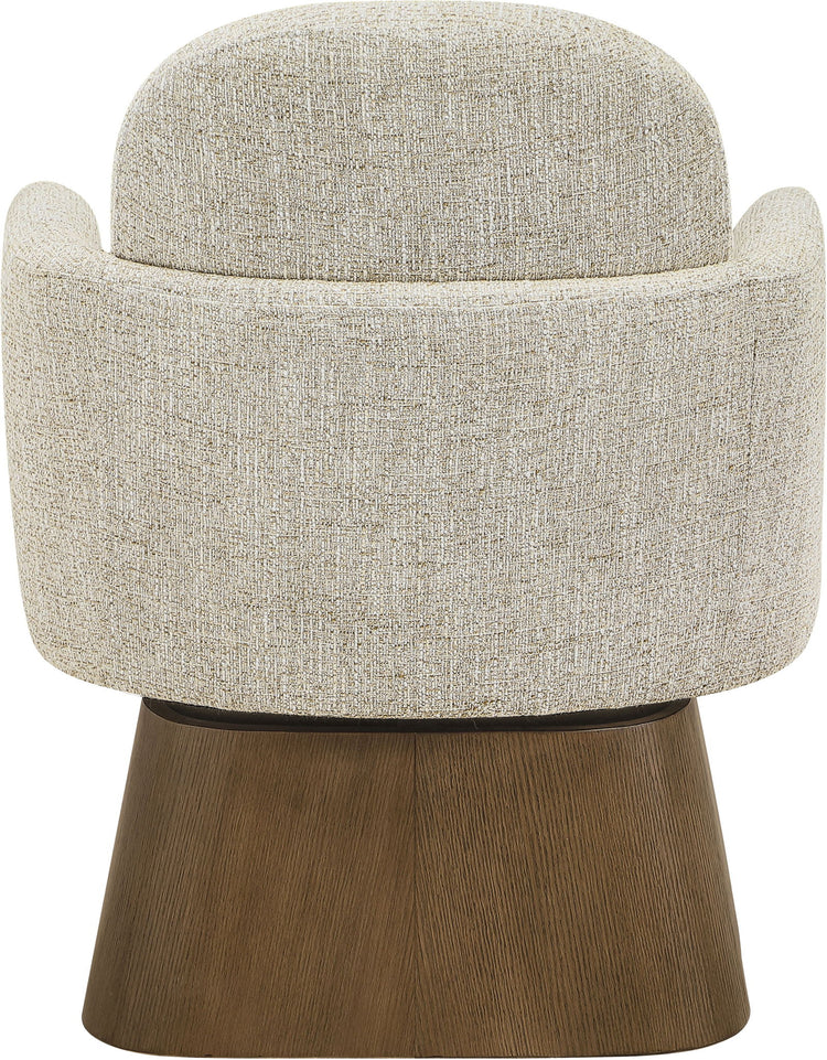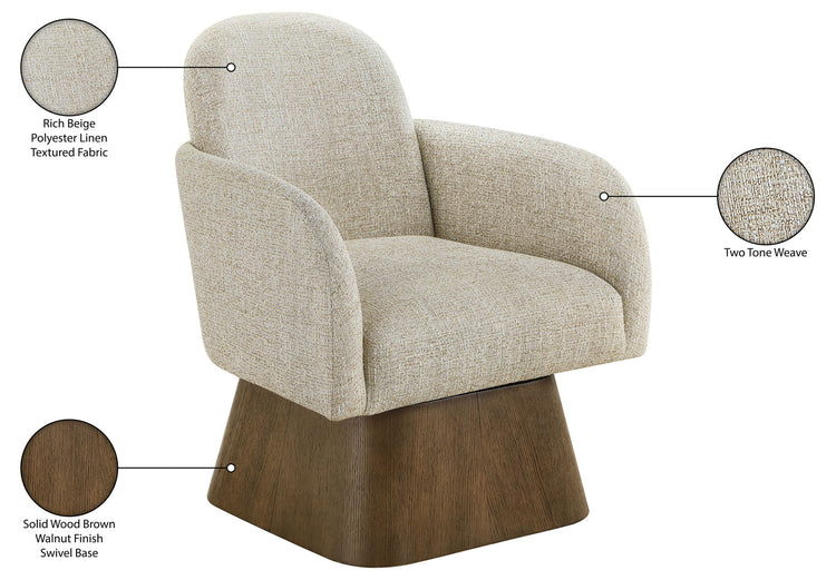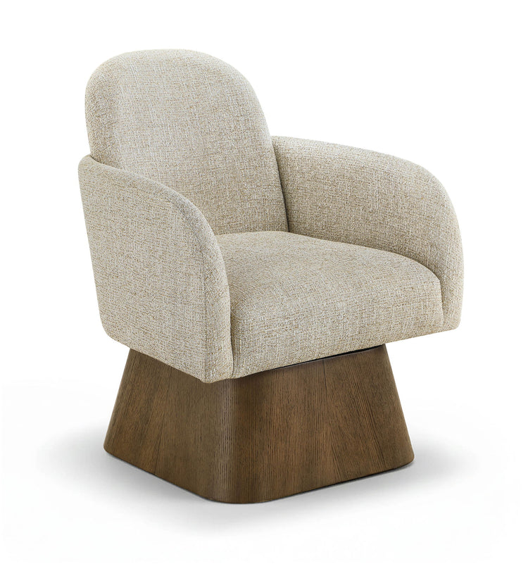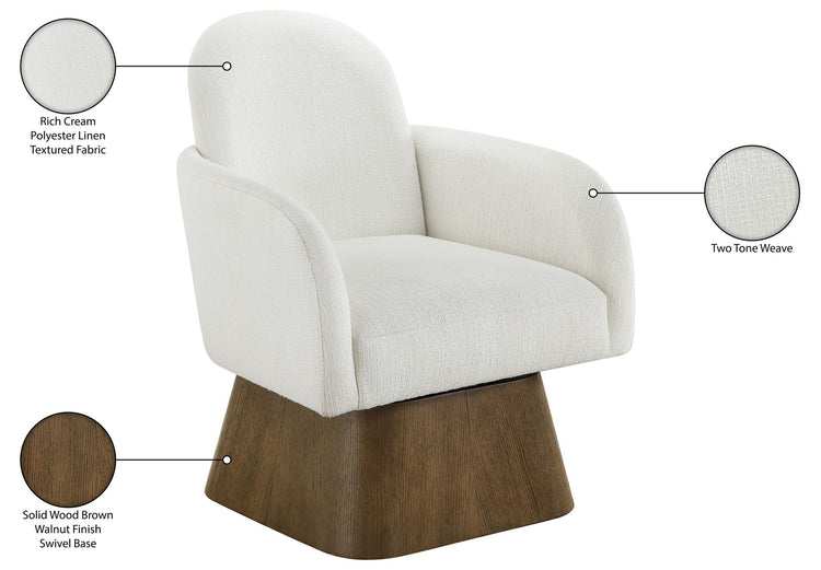 Marlowe - Linen Textured Fabric Upholstered Swivel Accent Chair - Cream / Stained Brown