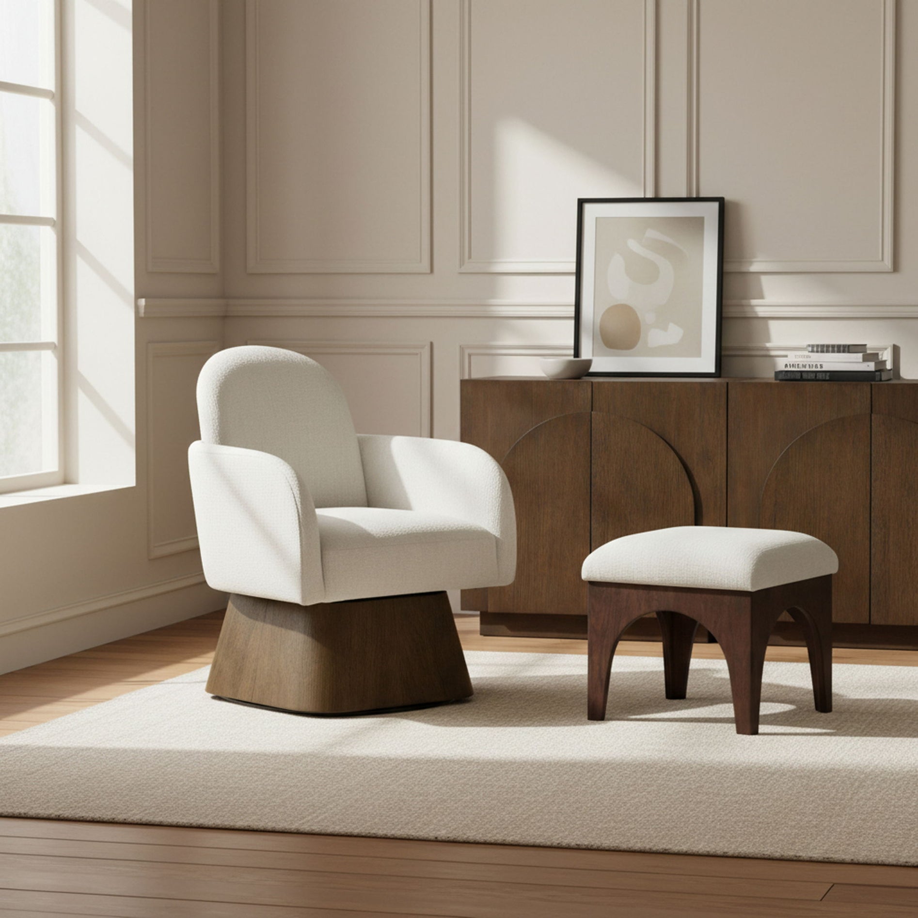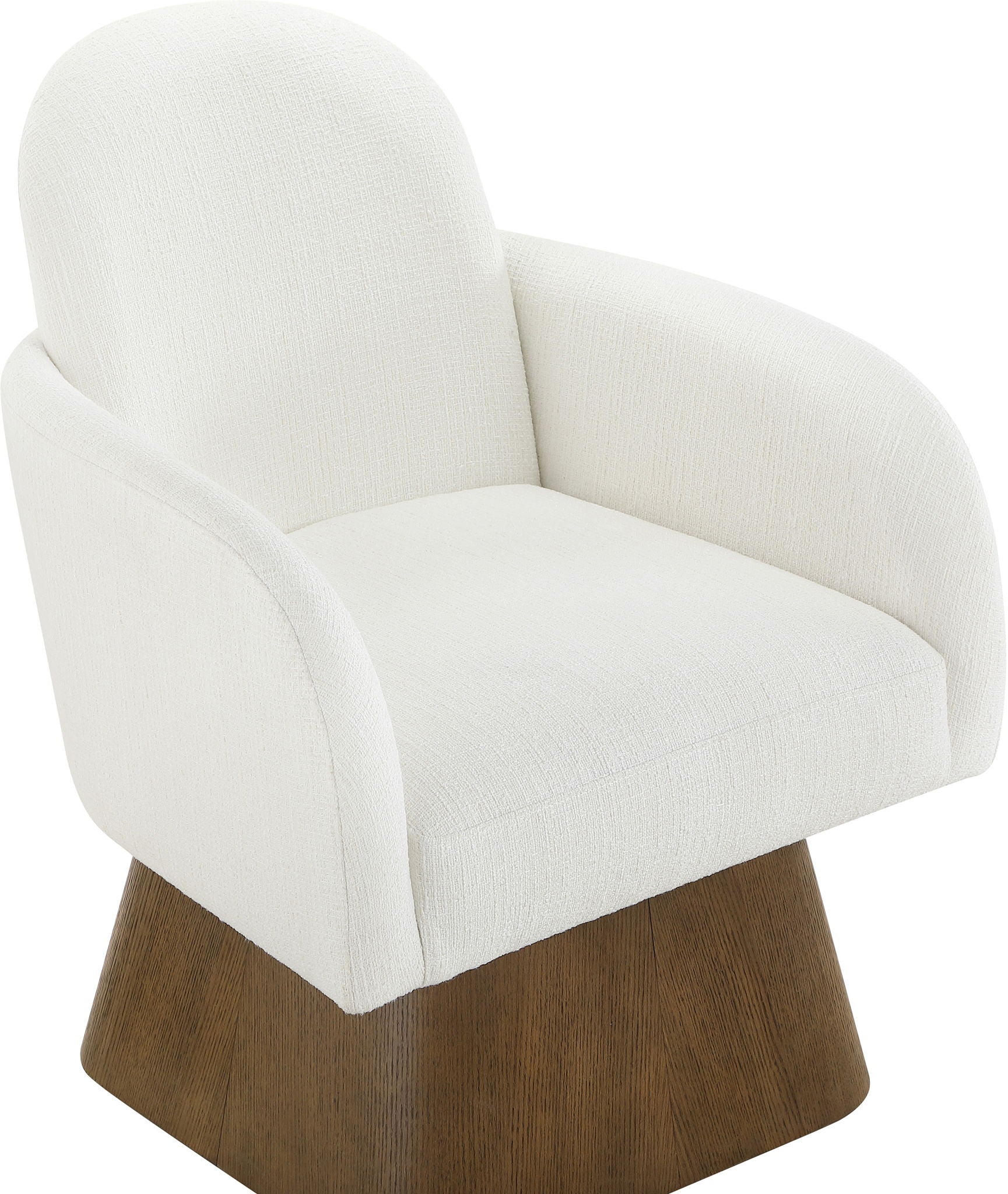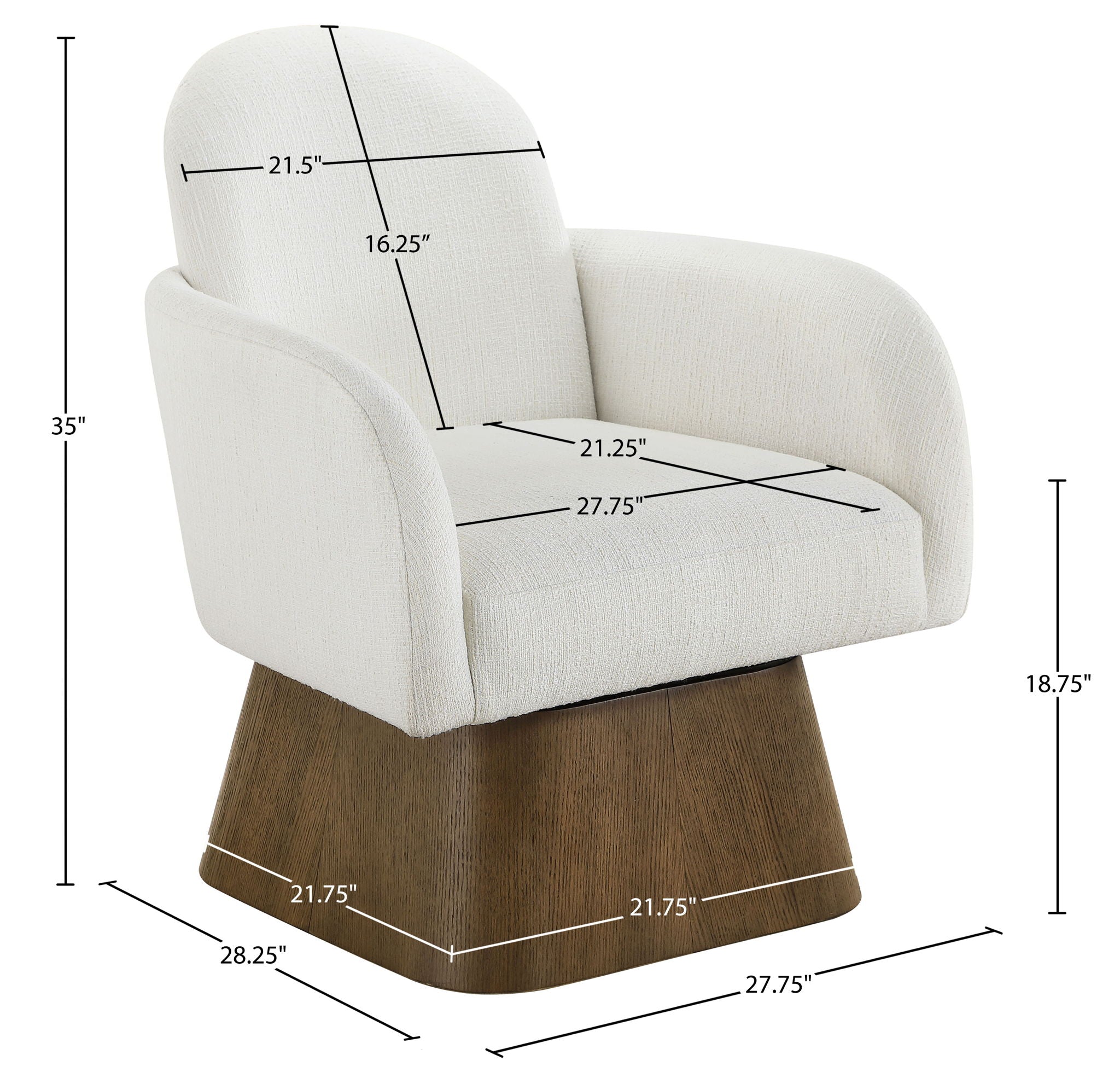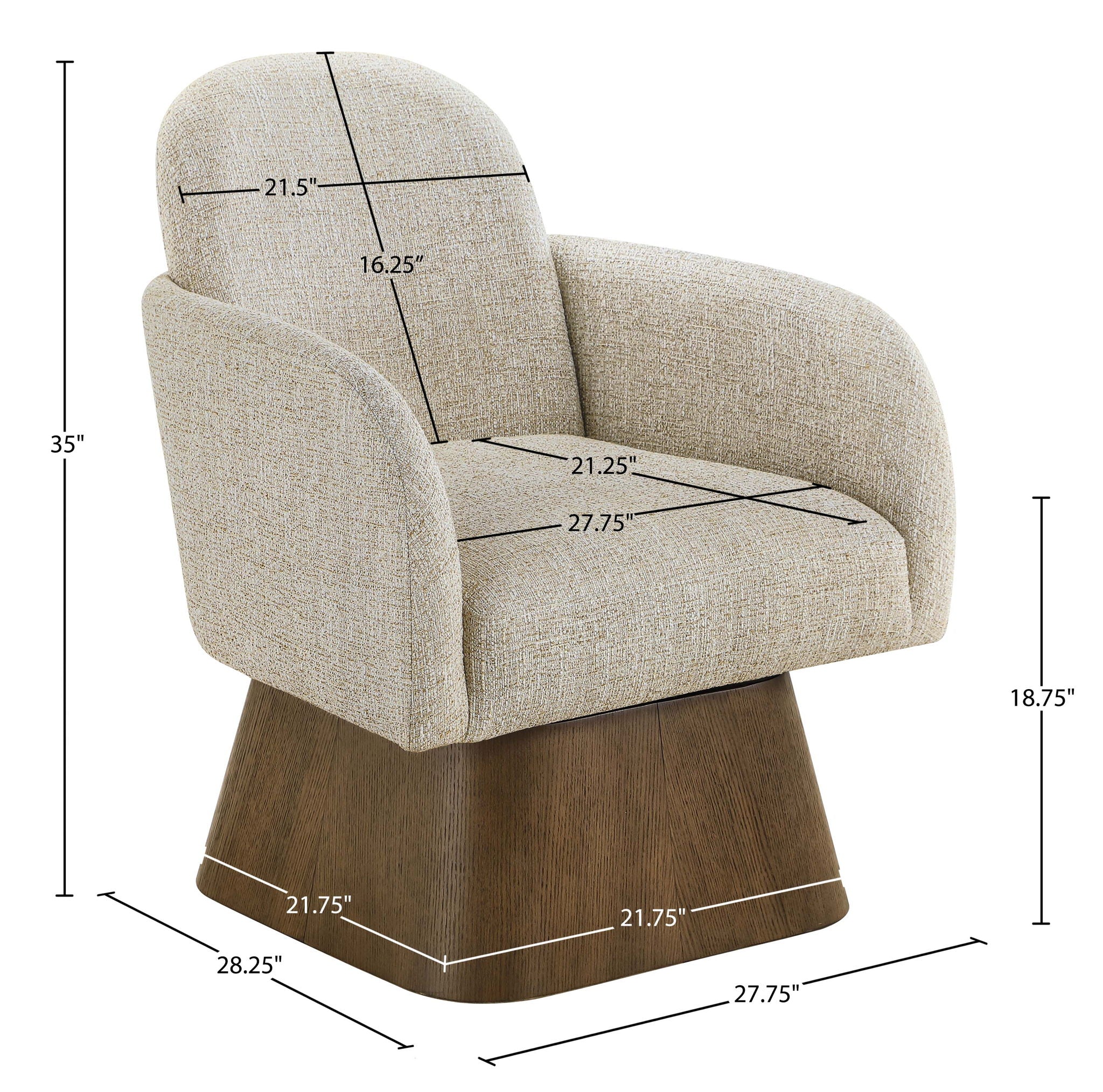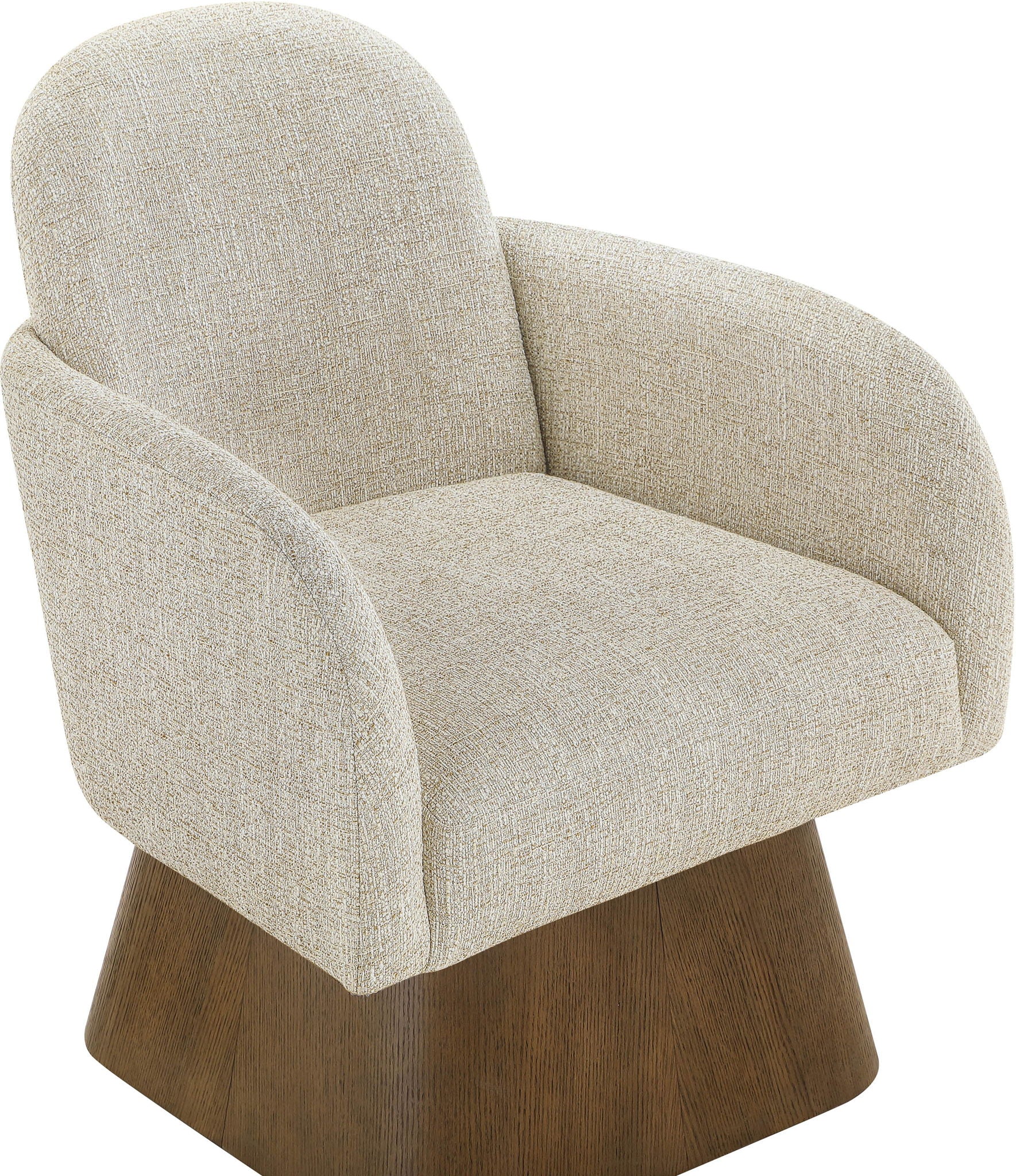Marlowe - Linen Textured Fabric Upholstered Swivel Accent Chair - Cream / Stained Brown