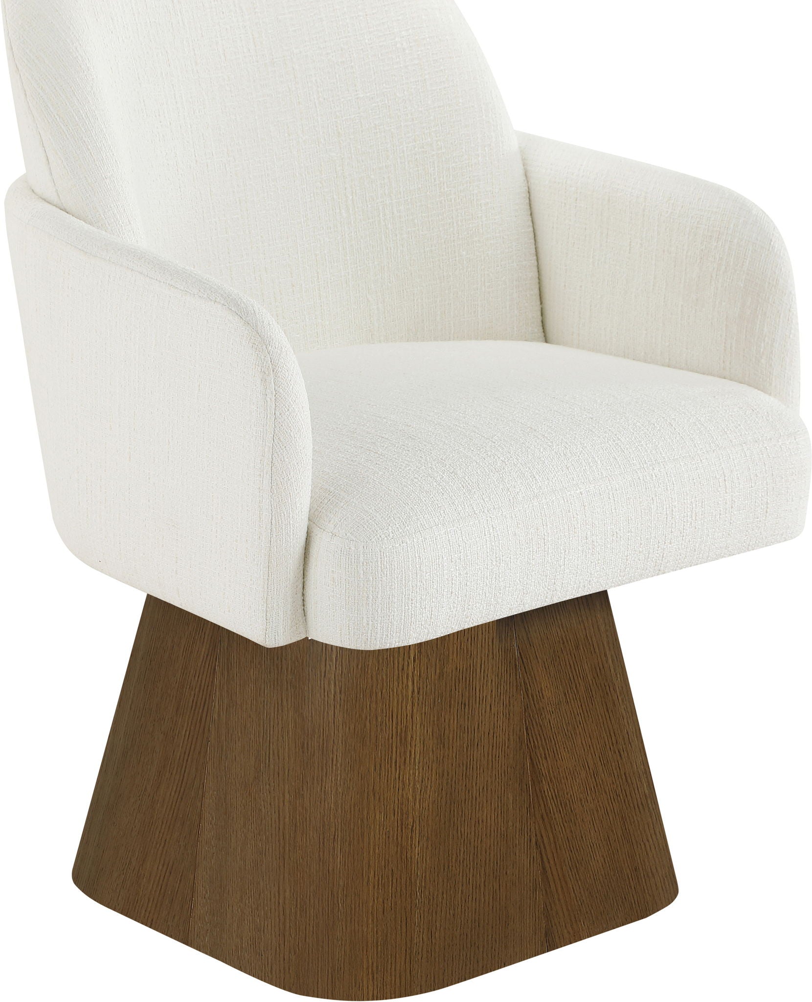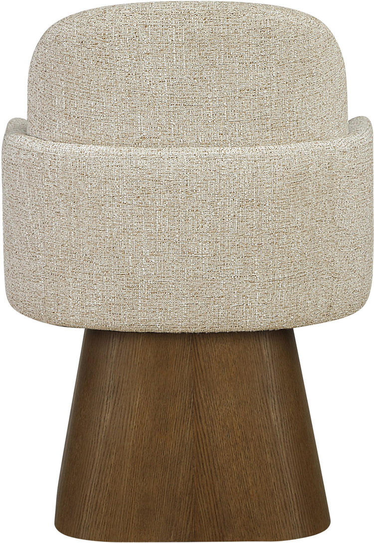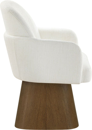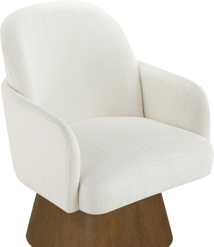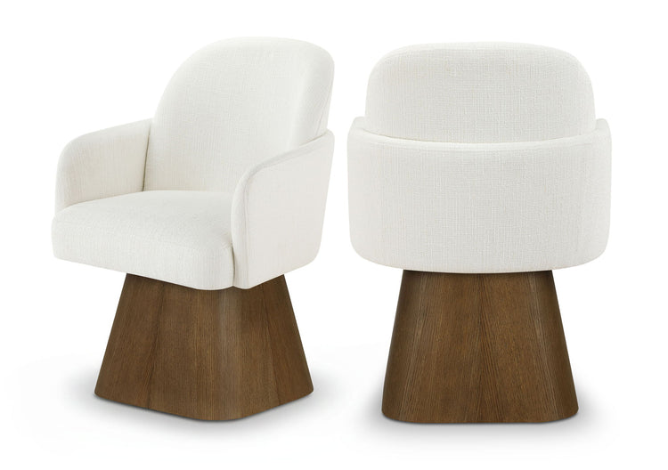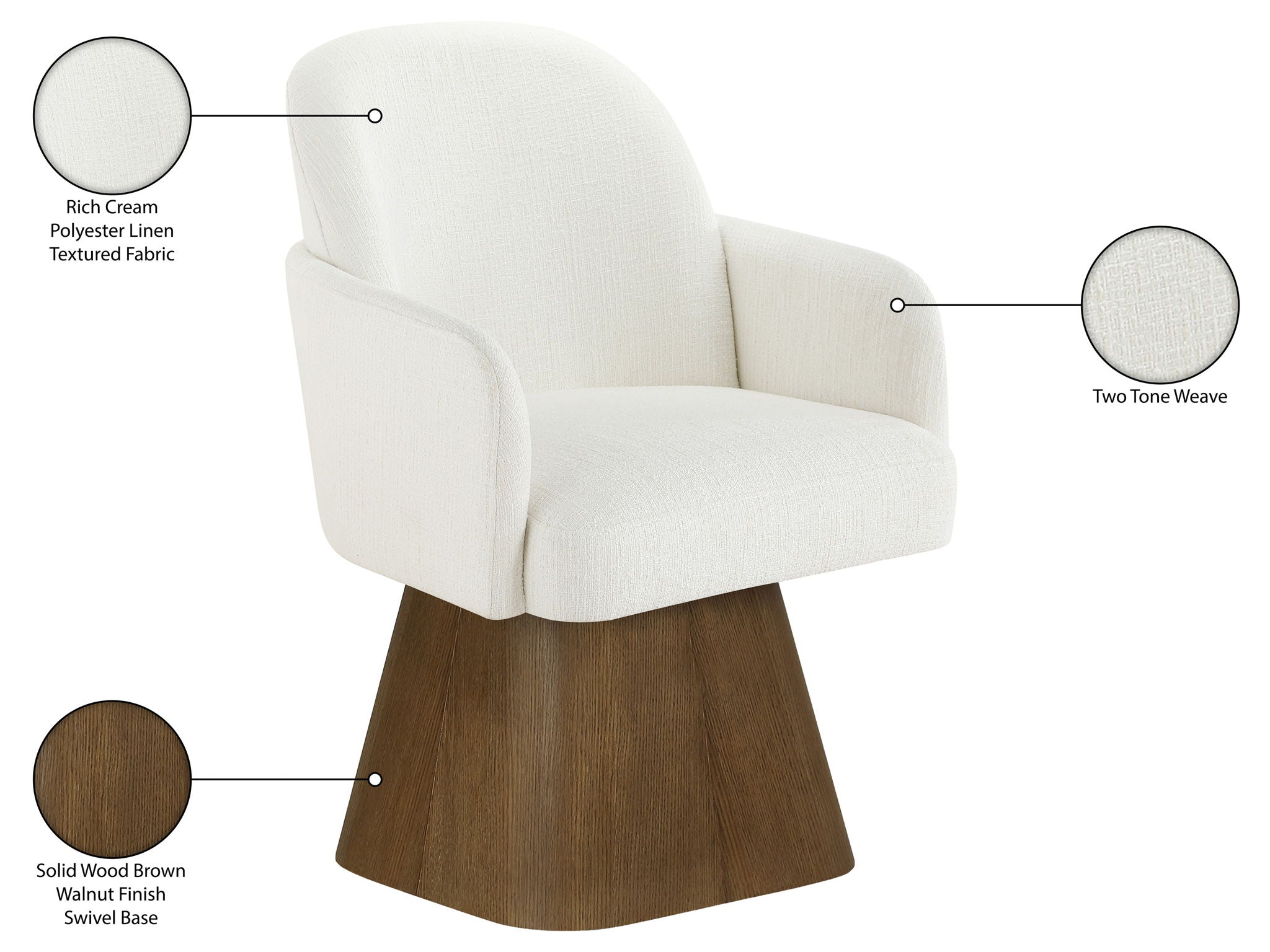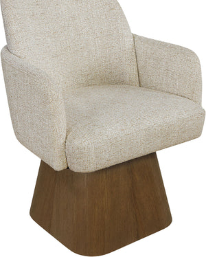 Marlowe - Linen Textured Fabric Upholstered Swivel Dining Arm Chair - Cream / Stained Brown