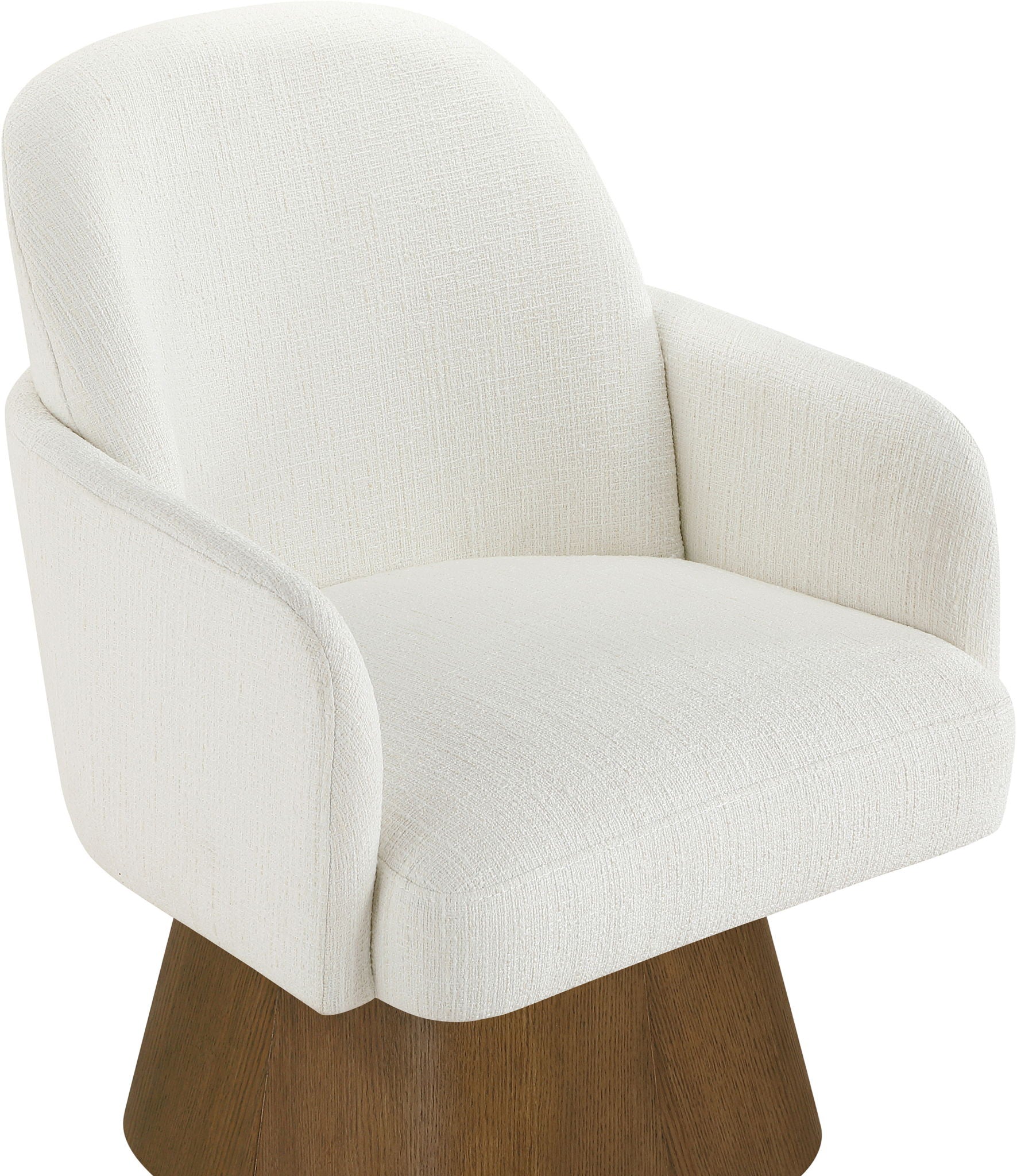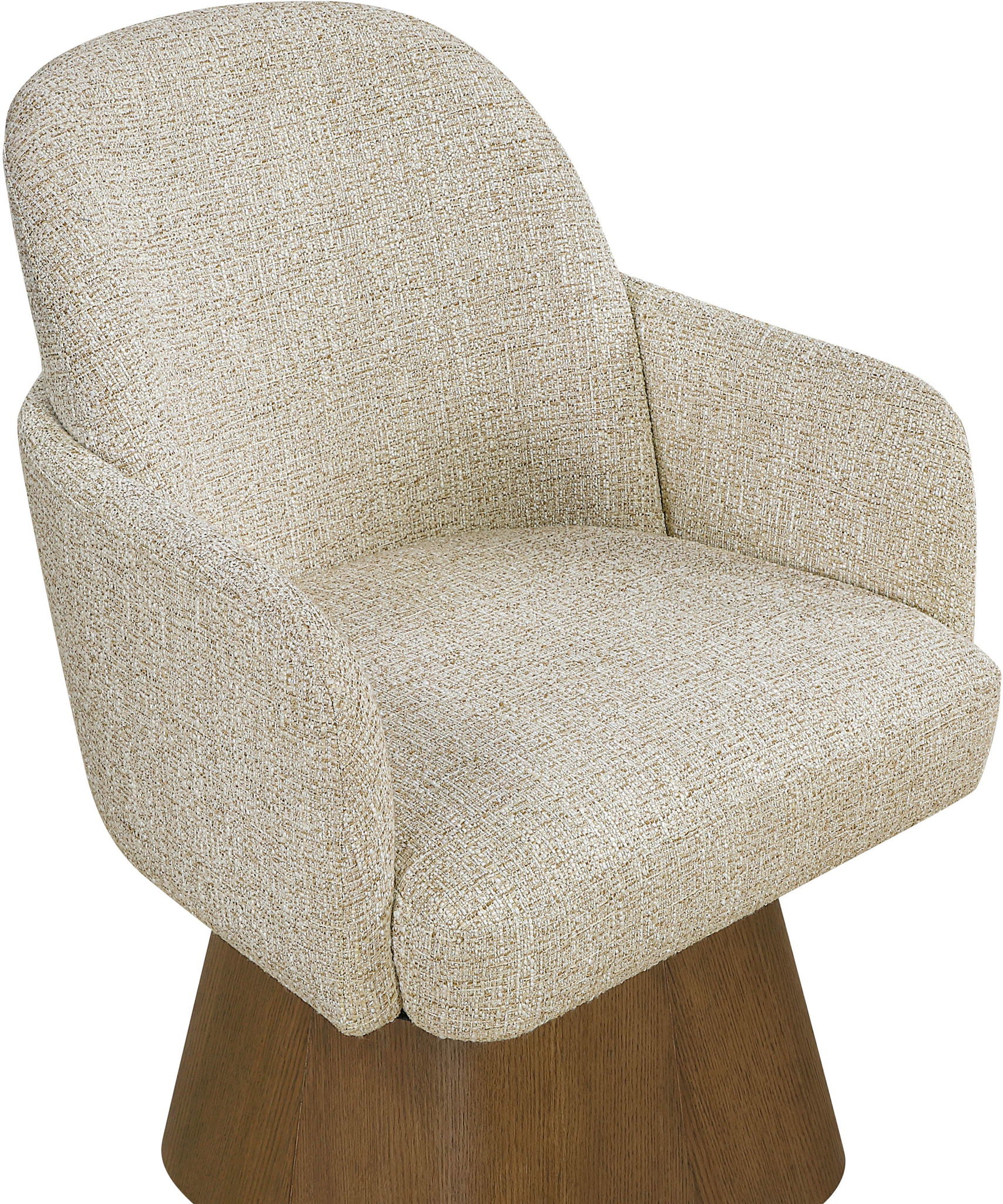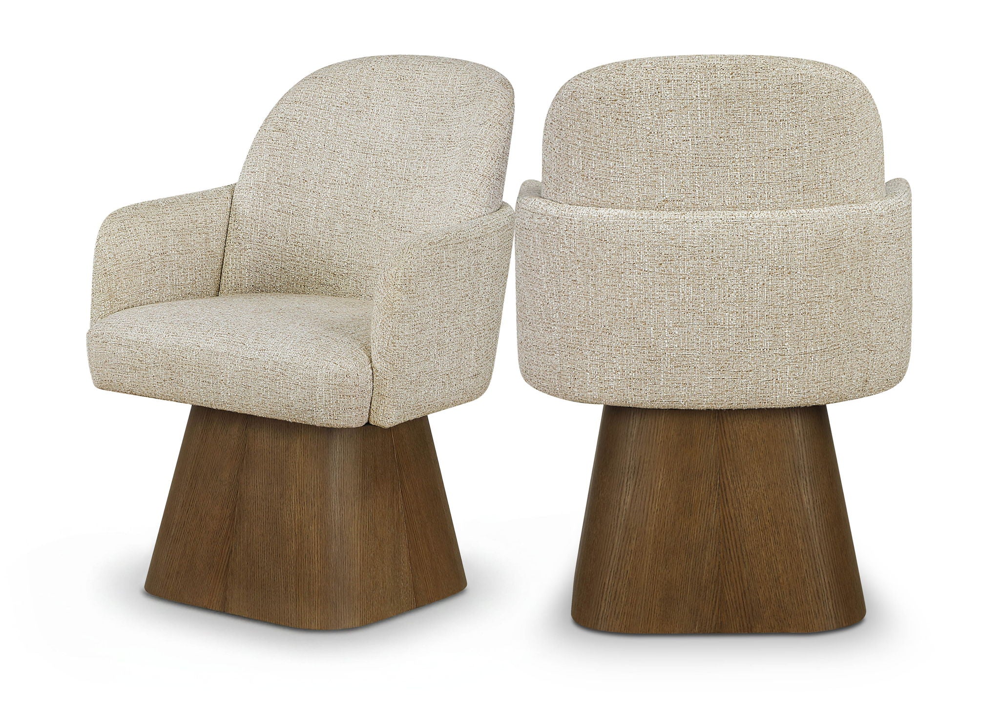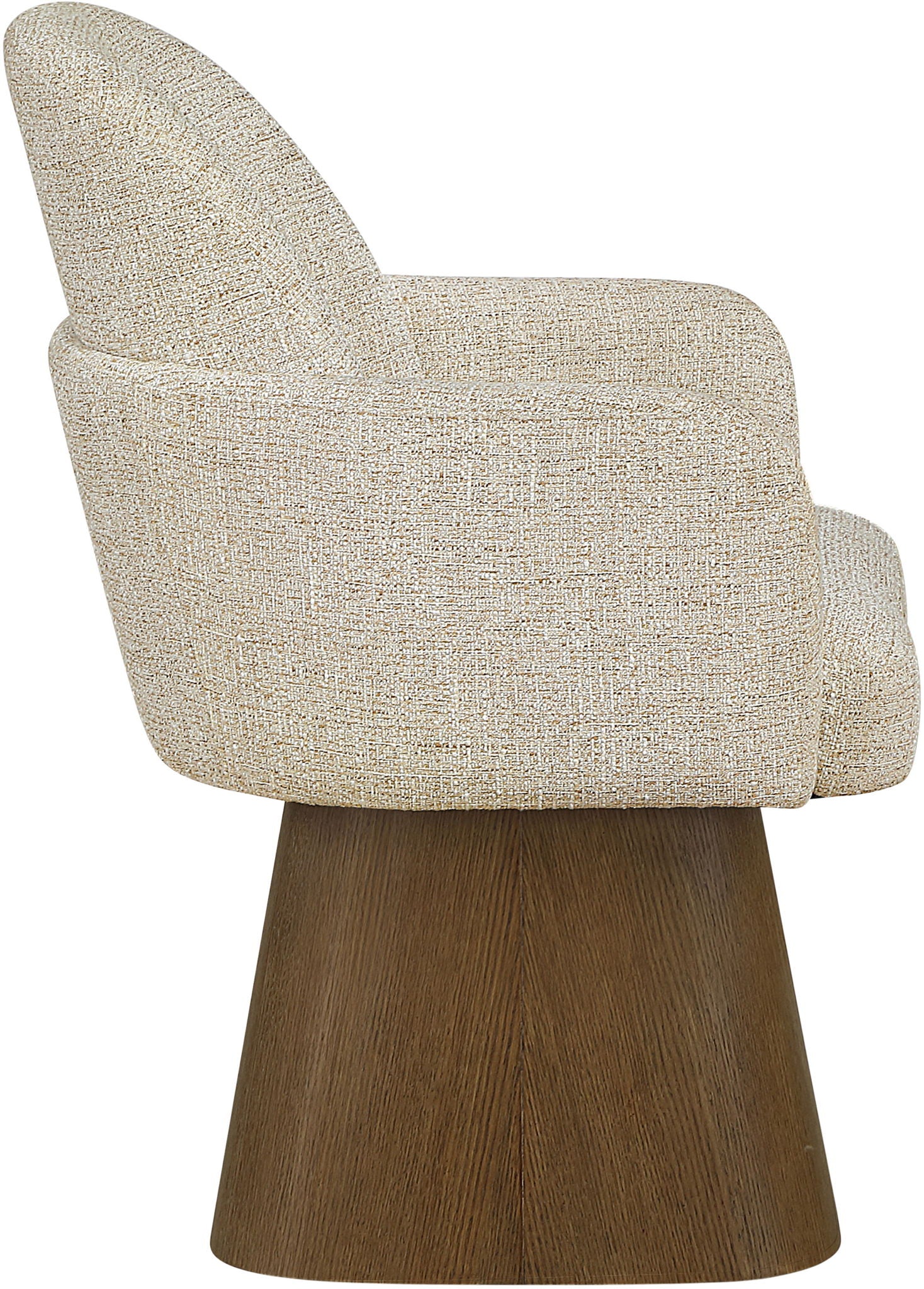 Marlowe - Linen Textured Fabric Upholstered Swivel Dining Arm Chair - Cream / Stained Brown