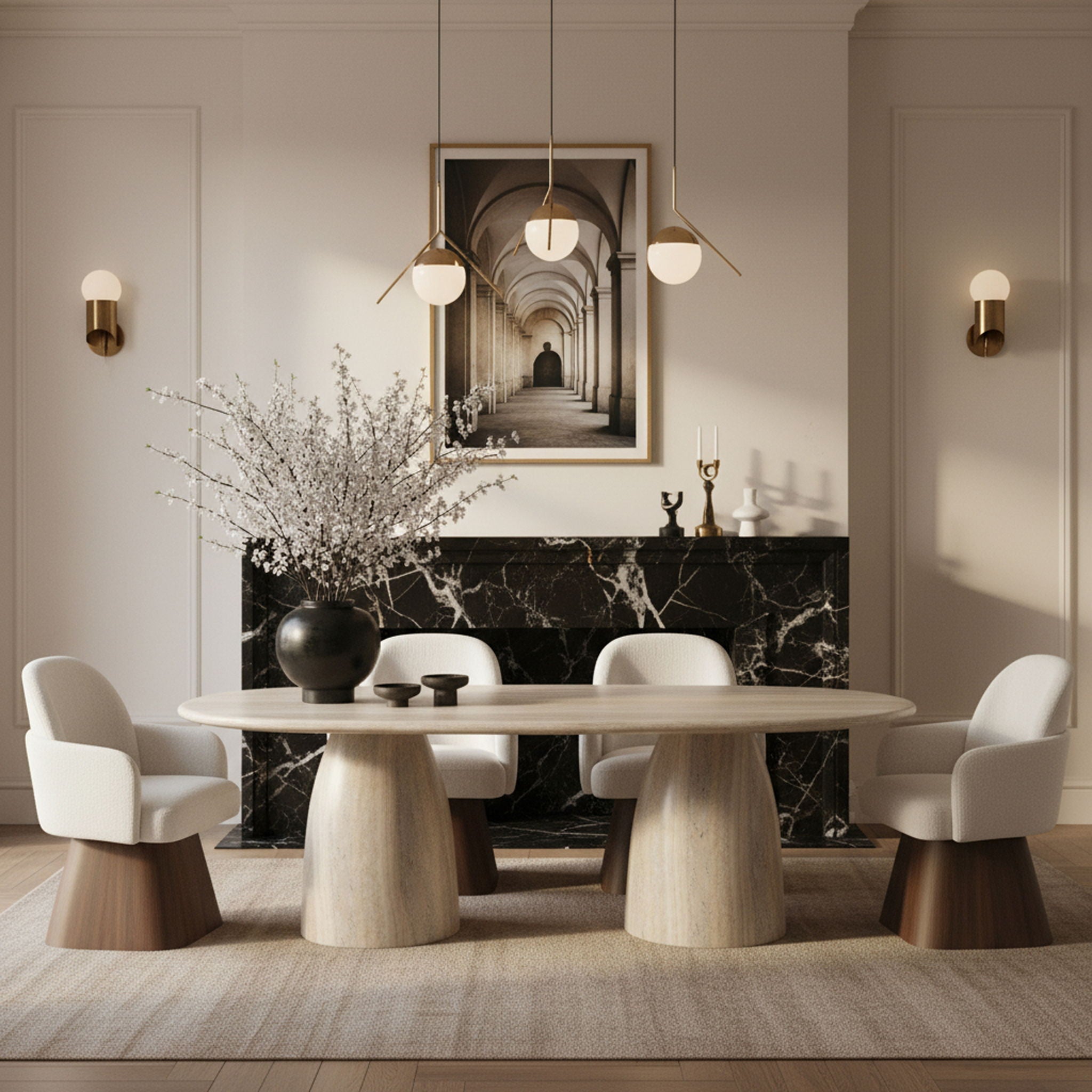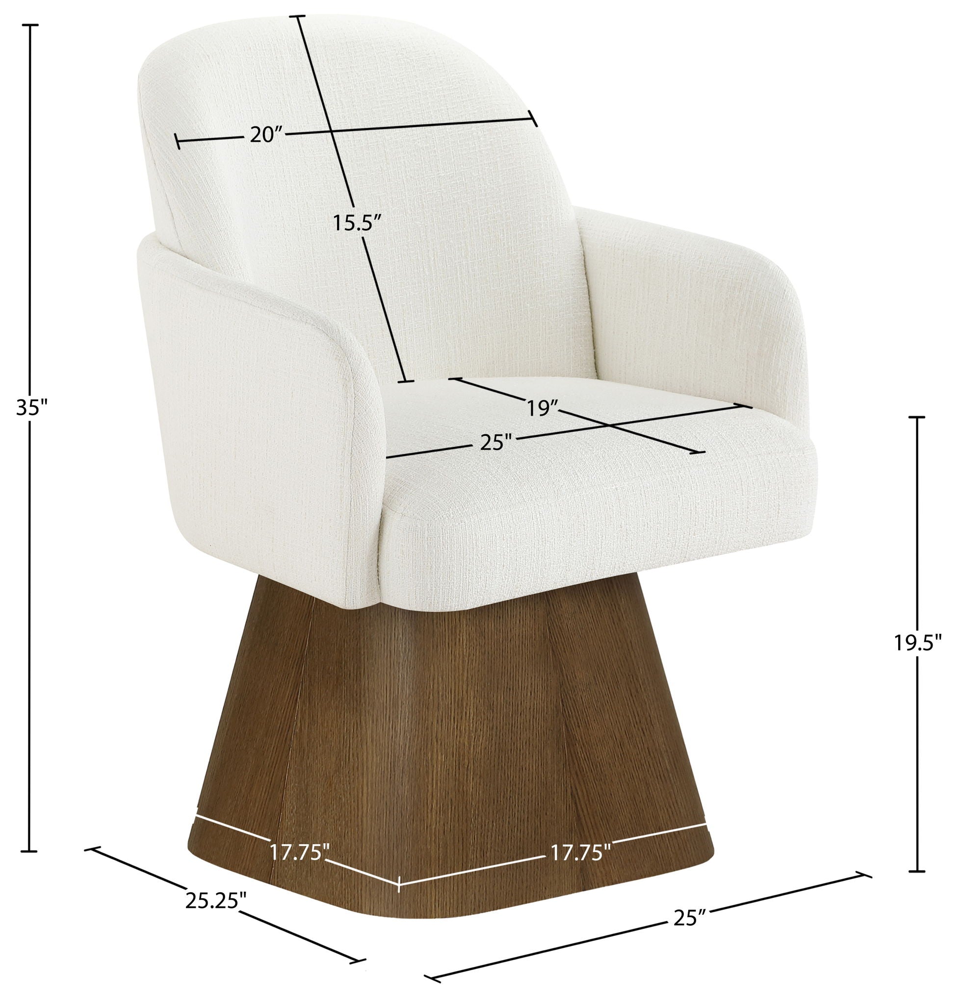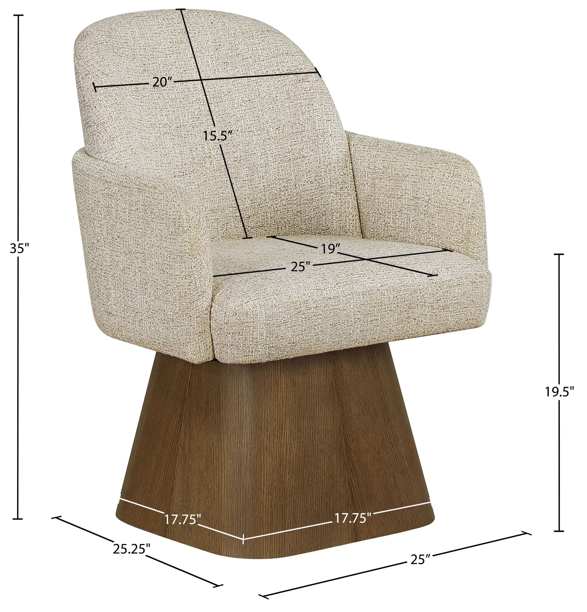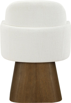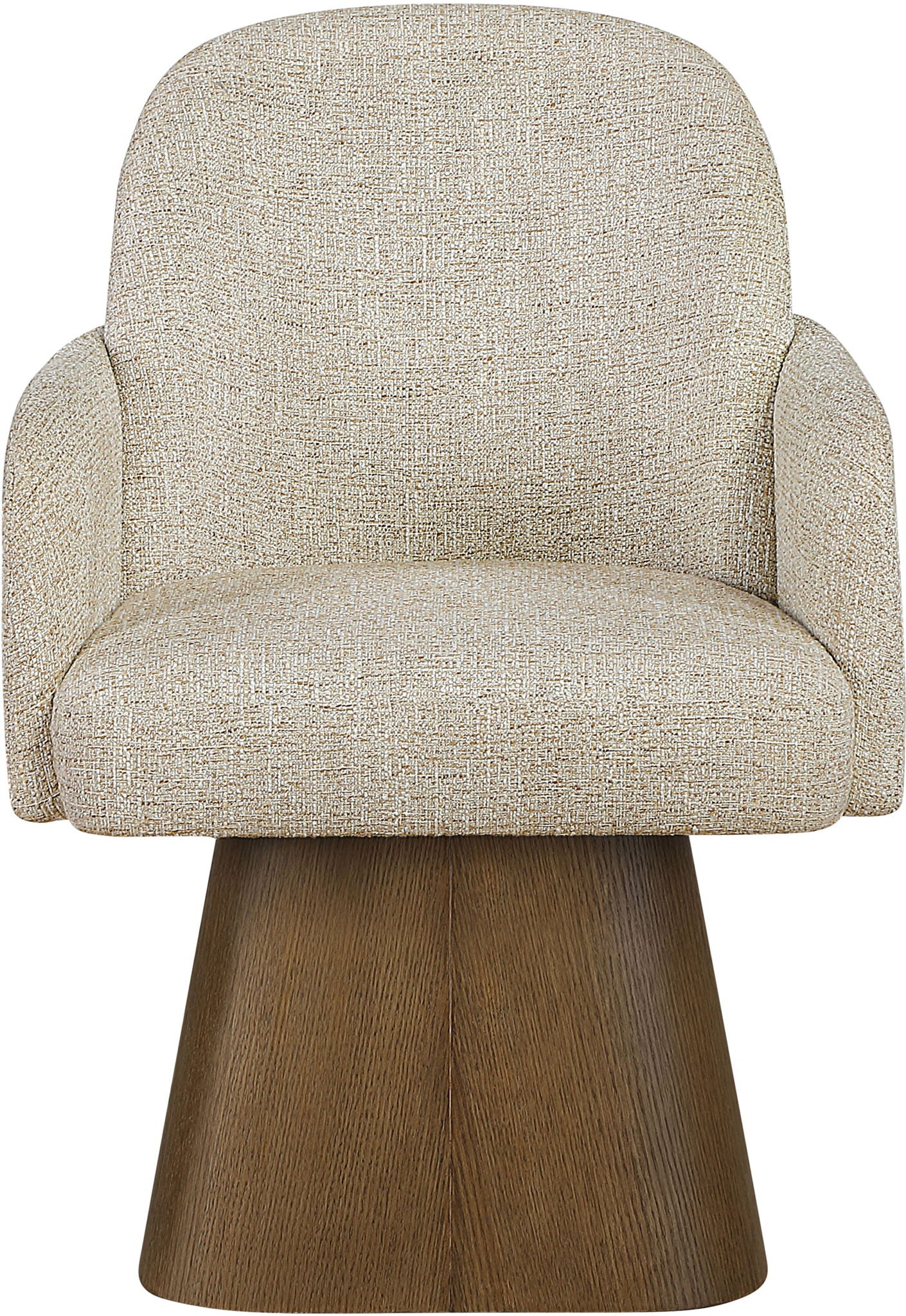 Marlowe - Linen Textured Fabric Upholstered Swivel Dining Arm Chair - Cream / Stained Brown