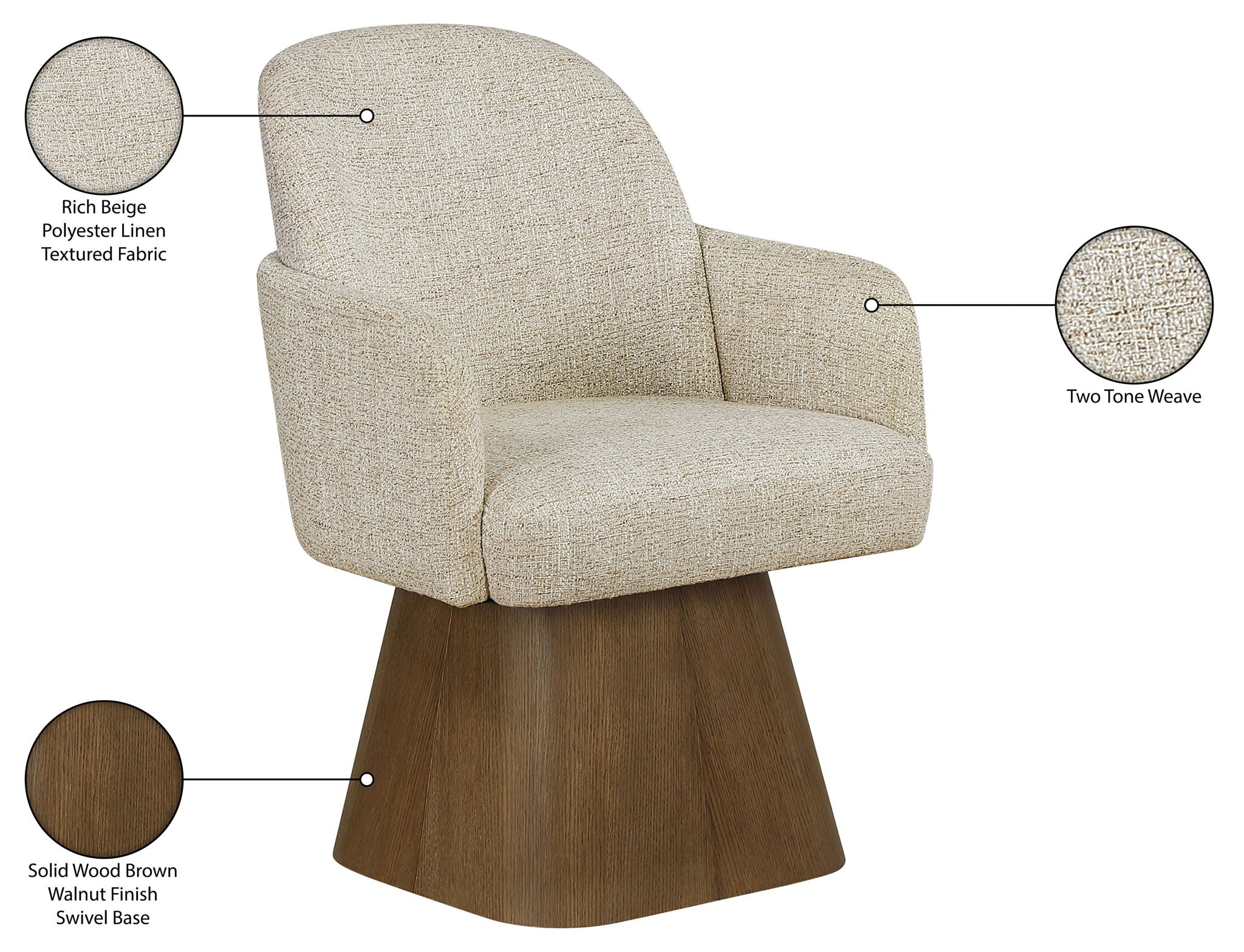 Marlowe - Linen Textured Fabric Upholstered Swivel Dining Arm Chair - Beige / Stained Brown