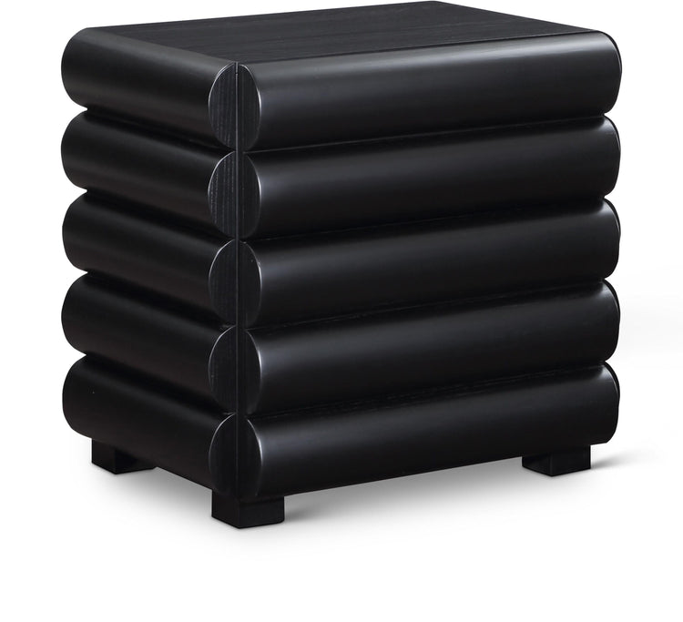 Add a touch of sophistication and allure to your living space with the exquisite Maverick Night Stand / Side Table. With its lustrous rich ash wood veneered finish, this piece exudes a timeless elegance that is sure to captivate the hearts of all who behold it. The table's thick fluted shape and seamless drawers further enhance its appeal, making it a stunning addition to any room in your home. Whether placed in your bedroom, living room, or study, this exquisite piece is sure to impress your family and friends with its understated charm and refined aesthetics.