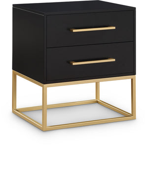 Inject bold, modern styling into your bedroom with this Maxine nightstand. The nightstand's contemporary design is nothing short of stunning, with unassuming lines and eye-grabbing hardware. A rich finish is modish and up-to-the-minute, while the brushed metal legs and drawer handles give this unit added flair. A metal base raises the nightstand from the floor for a noticeably upscale vibe. Fill this nightstand's drawers with essentials for keeping your bedroom space clean and neat.
