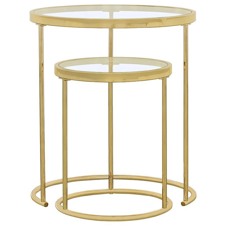 Maylin - 2 Piece Round Glass Top Nesting Table Set - Gold