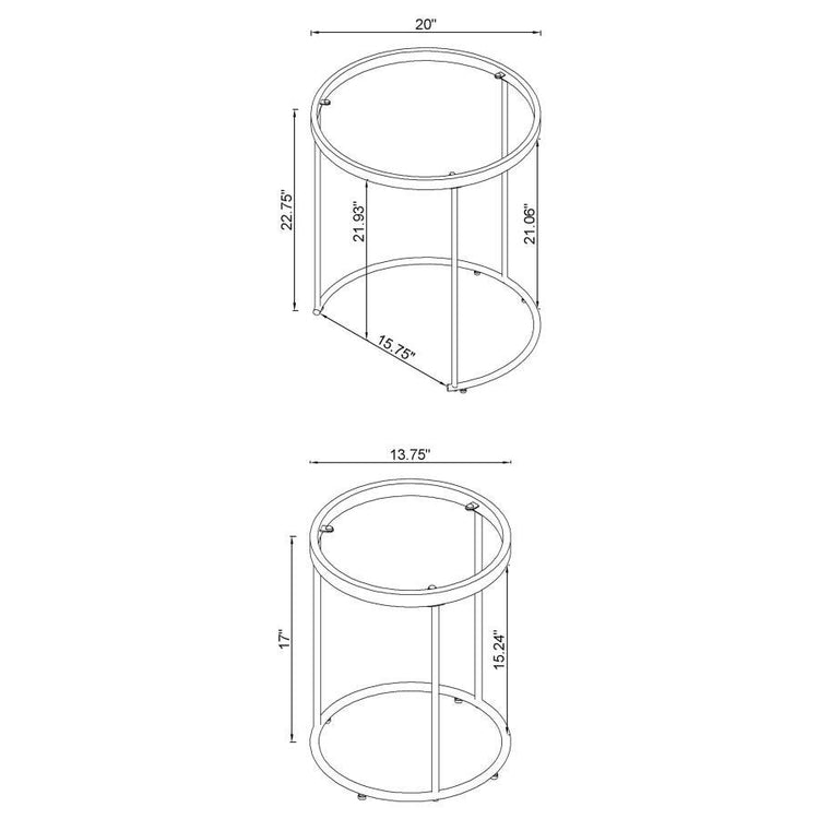 Elevate your living space with this stylish two-piece nesting table set. Featuring clear tempered glass tops and a sleek gold electroplated steel frame, these round tables provide both convenience and modern elegance. The clean, minimalist design seamlessly blends into various decor styles, offering functionality and sophistication. Ideal for small spaces, these nesting tables allow you to easily organize your items while adding a touch of luxury to your home.