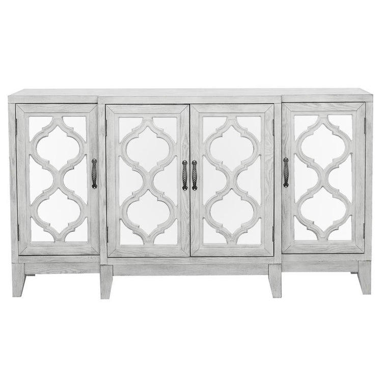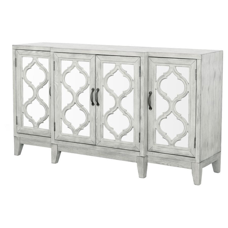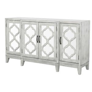 Mckellen - 4 Door Wood Trellis Accent Cabinet - Distressed White