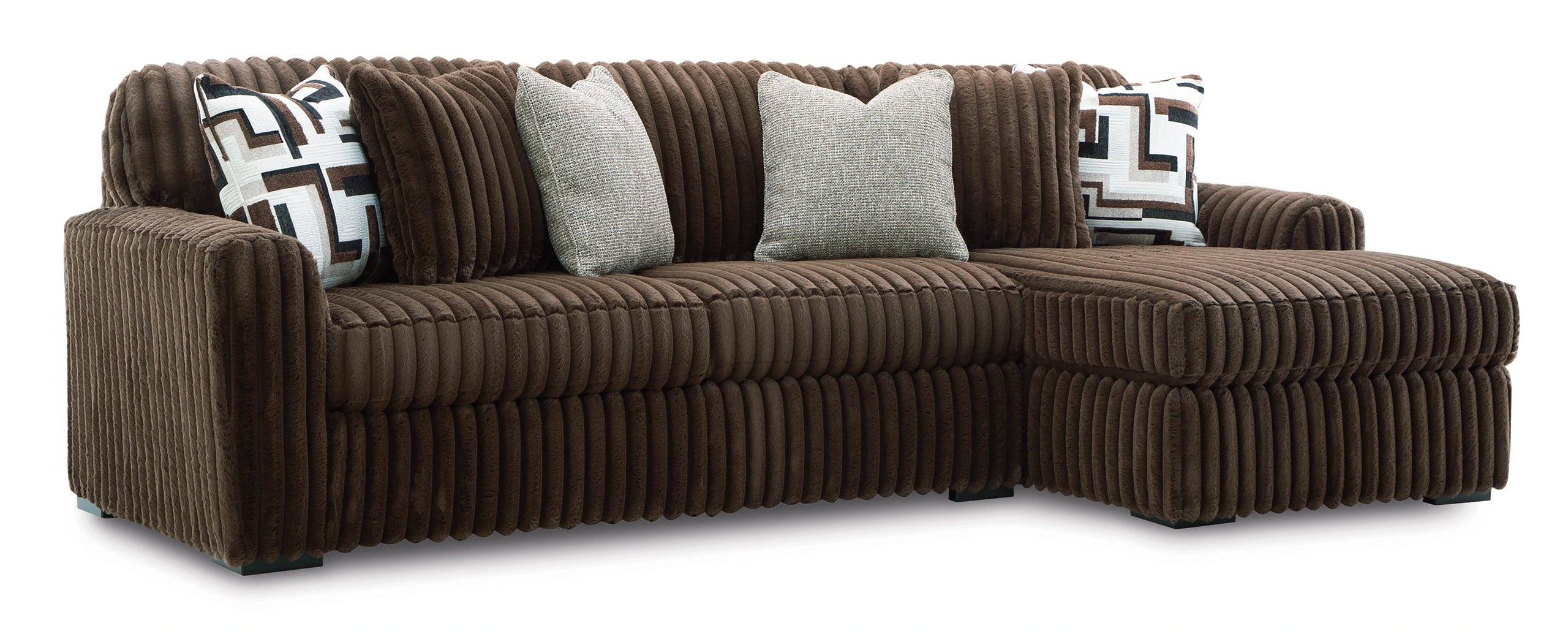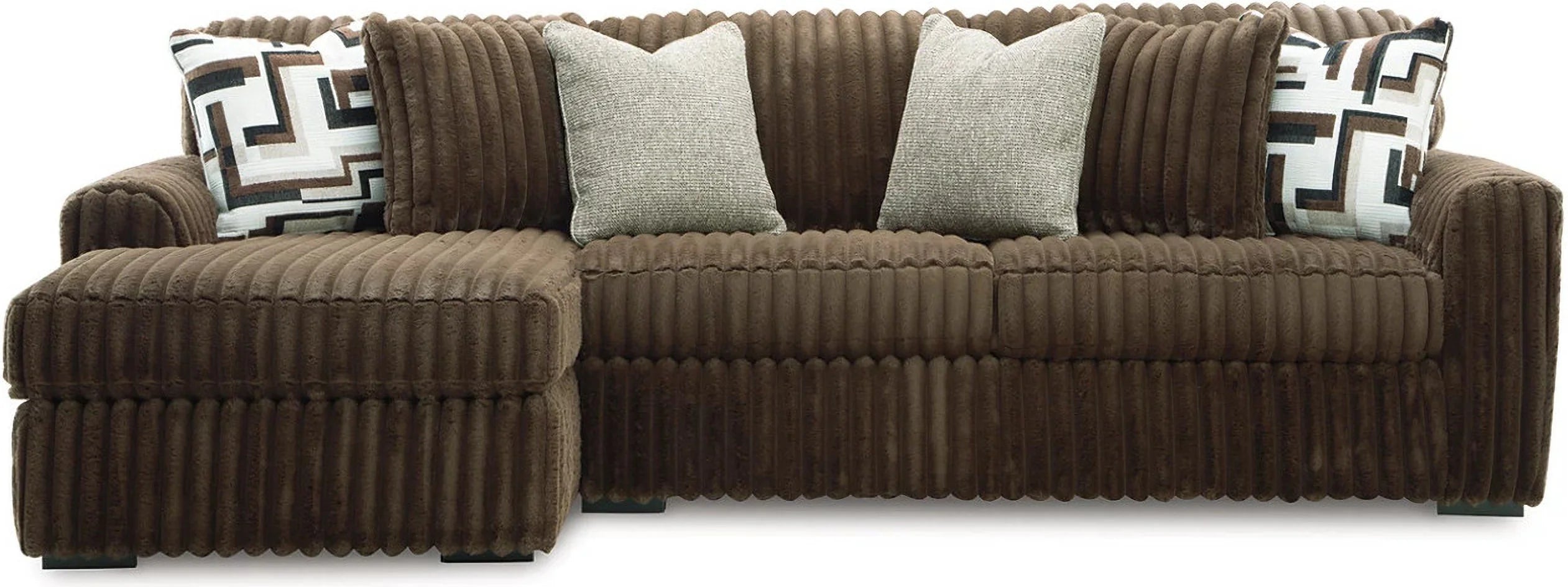 Contemporary Design: Wrapped in luxuriously soft jumbo corduroy, the Midnight Madness sectional offers a stylish modern look, with the Chocolate color providing a rich and versatile touch to any room.