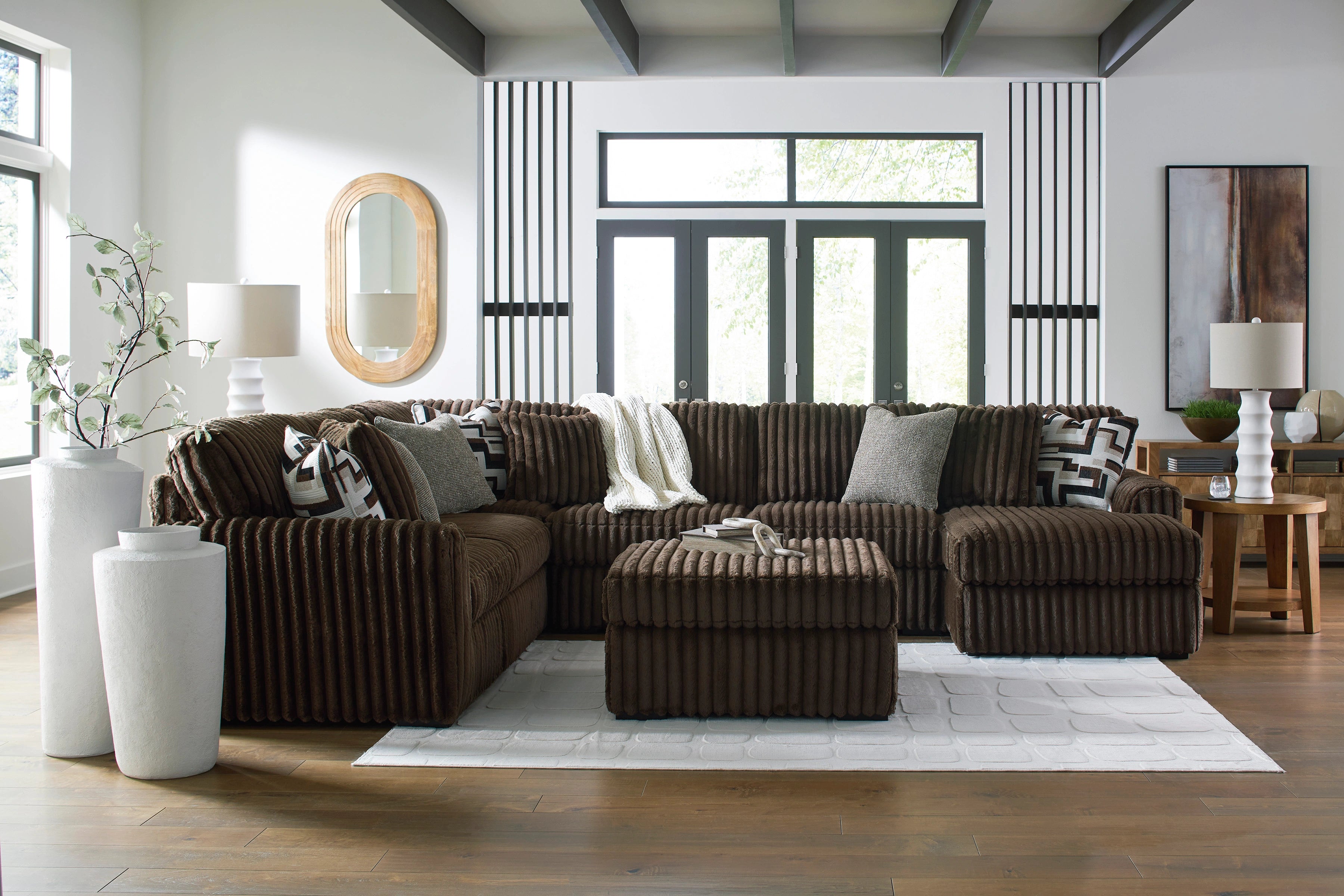 Luxurious Design: Upholstered in a soft jumbo corduroy fabric, the Midnight Madness sectional combines comfort and style. Its deep Chocolate color makes it a versatile addition to any modern living space.