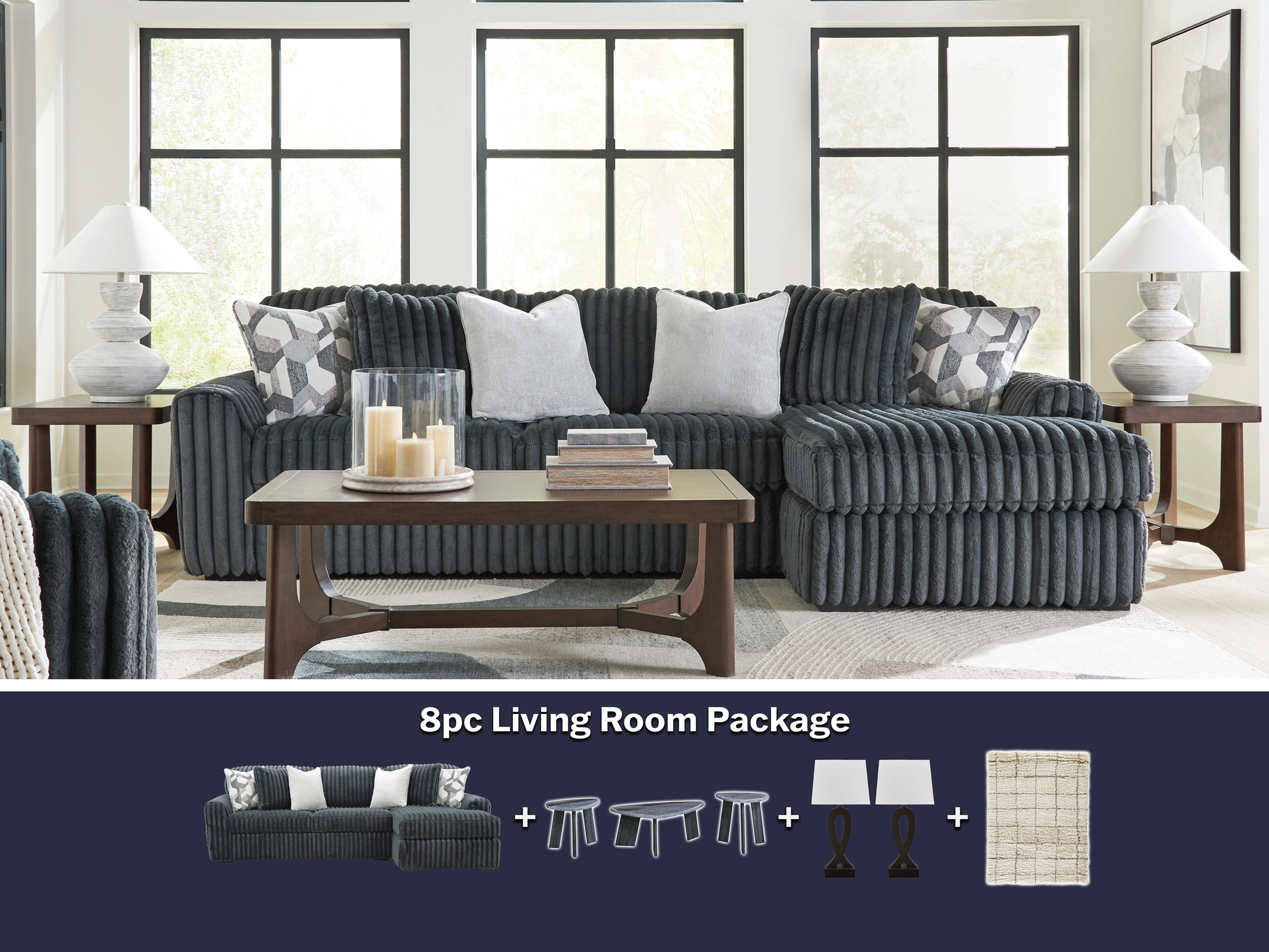 Midnight Madness Gunmetal 8pc Living Room Package
