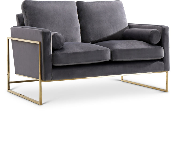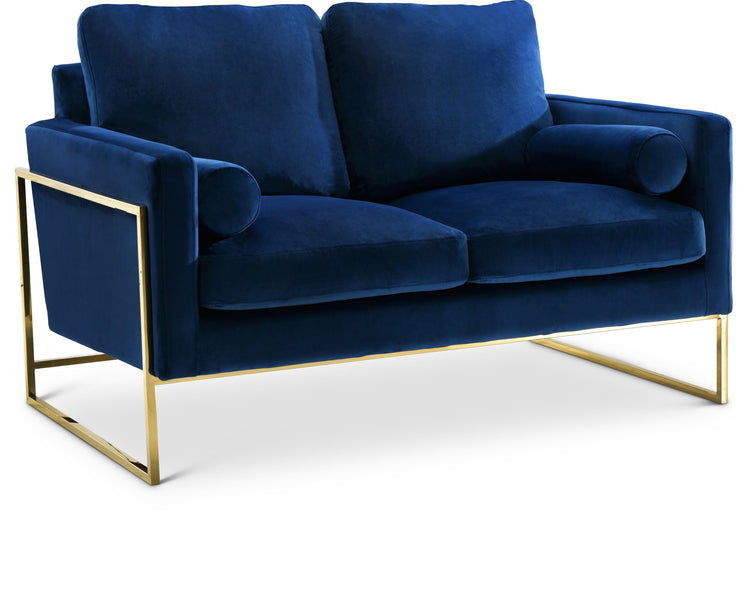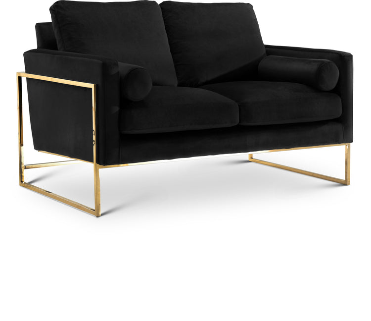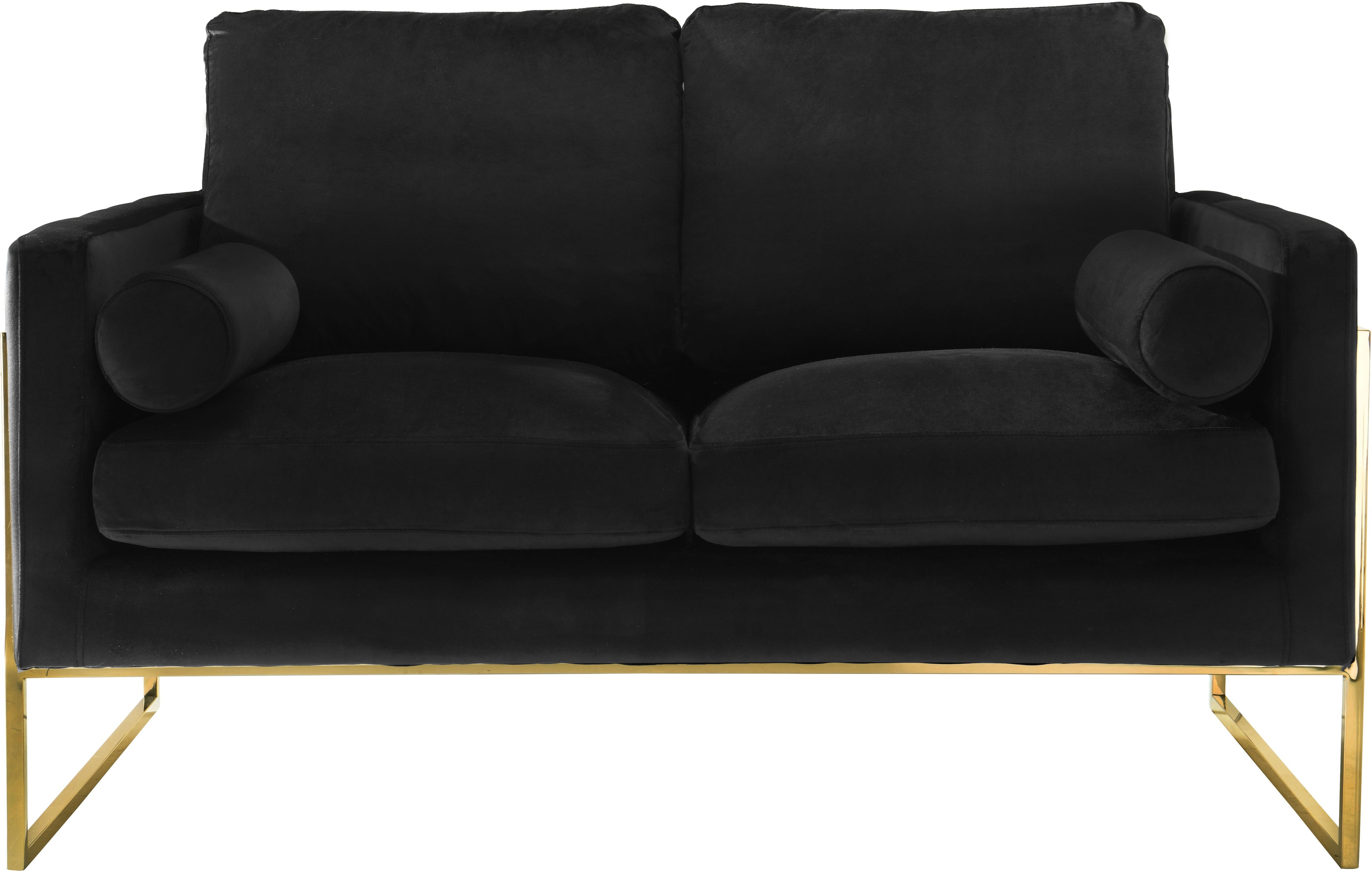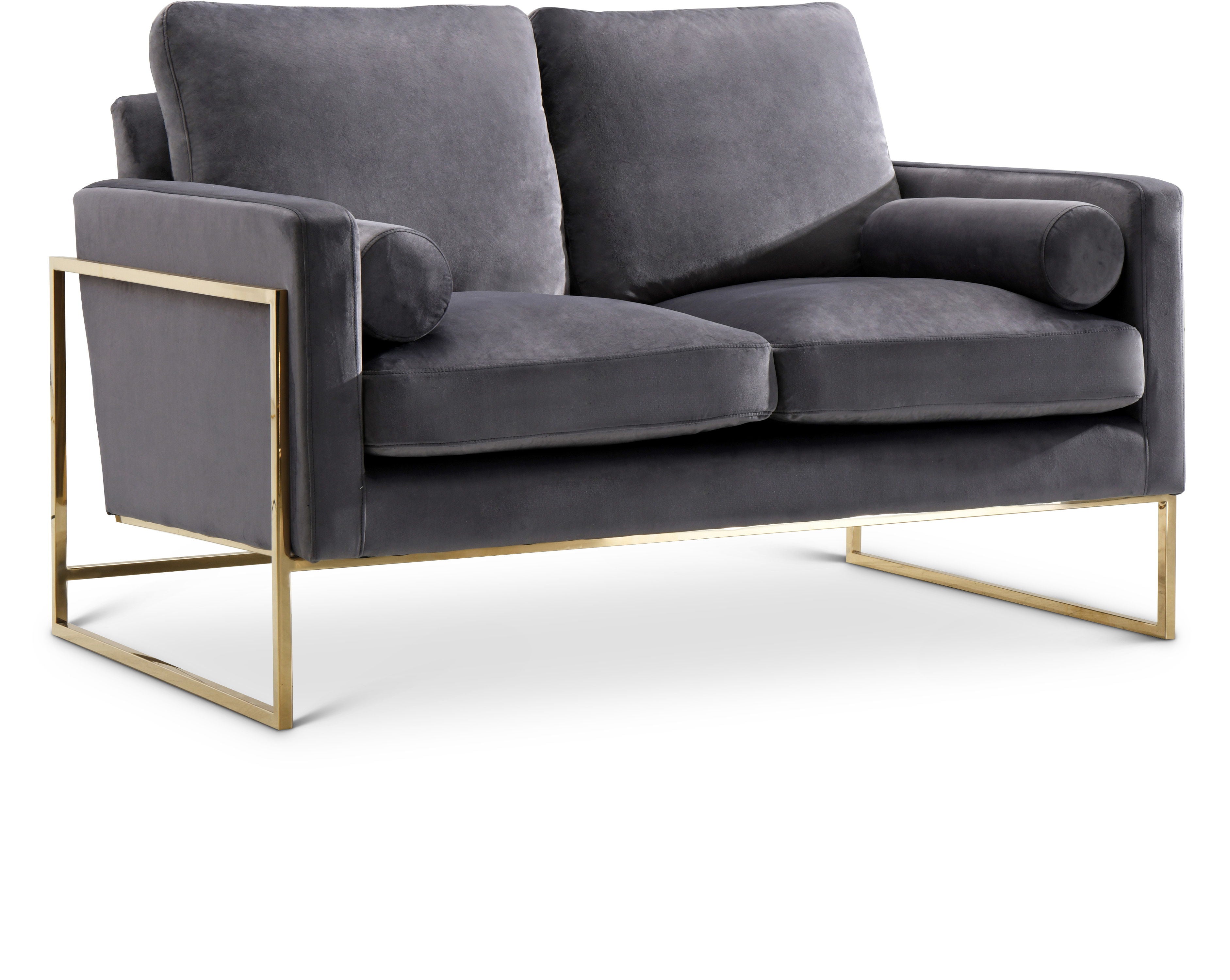 Seat guests in complete luxury on the Mila Loveseat. The bold color makes a statement in your space, and the stainless steel frame ensures sturdy support while you relax or take a nap. It comes with two throw pillows that cradle your sides as you sit, elevating its comfort level. Lots of clearance beneath this sofa makes cleaning and vacuuming a breeze. Buy it alone or pair it with the matching sofa or chair!