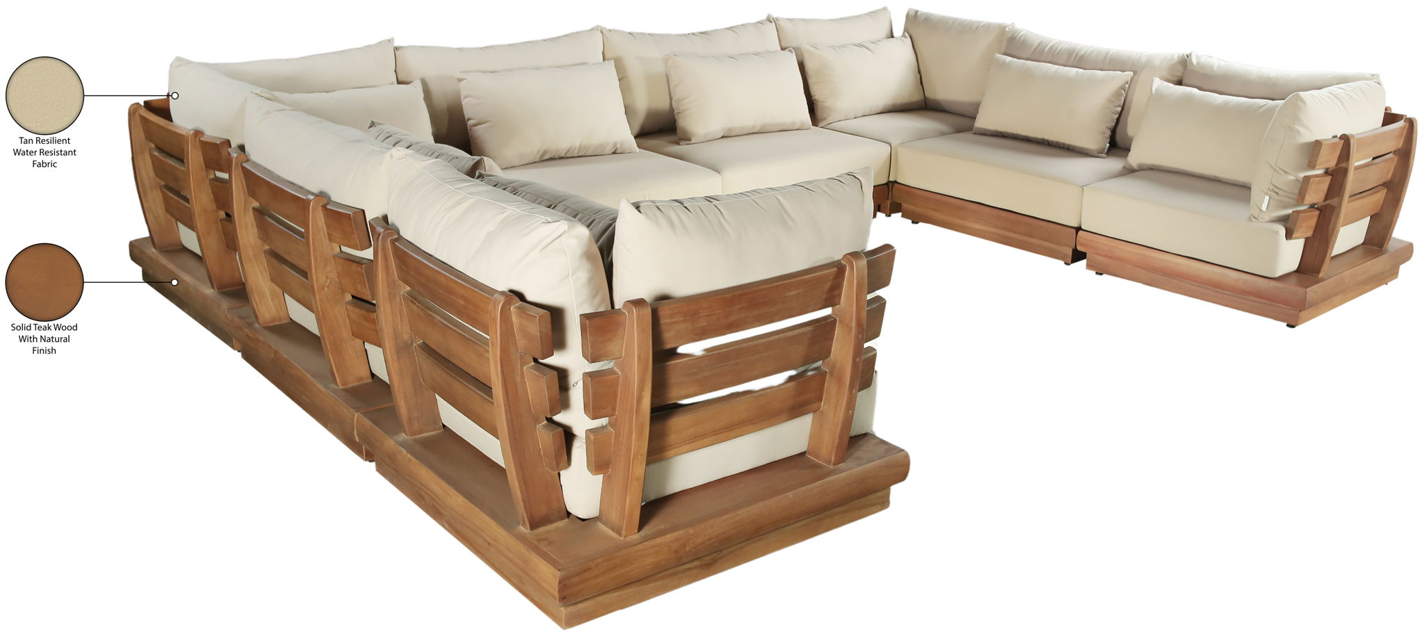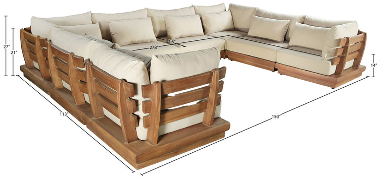 Mirella - 8 Piece Water Resistant Fabric 150" Upholstered Outdoor Patio Modular Sectional - Tan