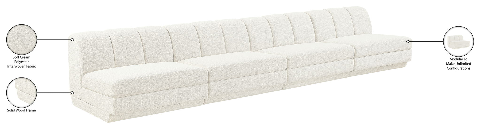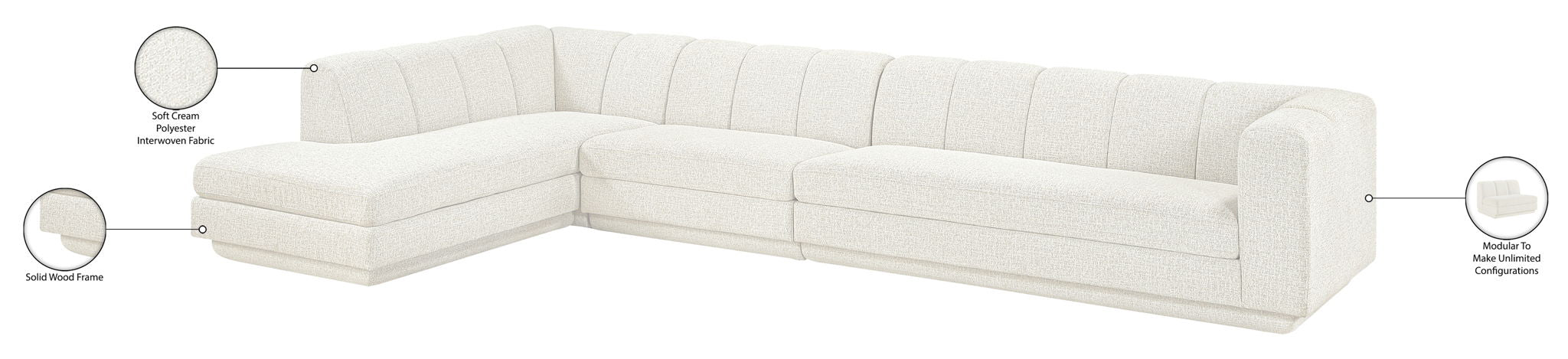 Modari - Fabric Upholstered 4 Piece Modular Sofa - Cream