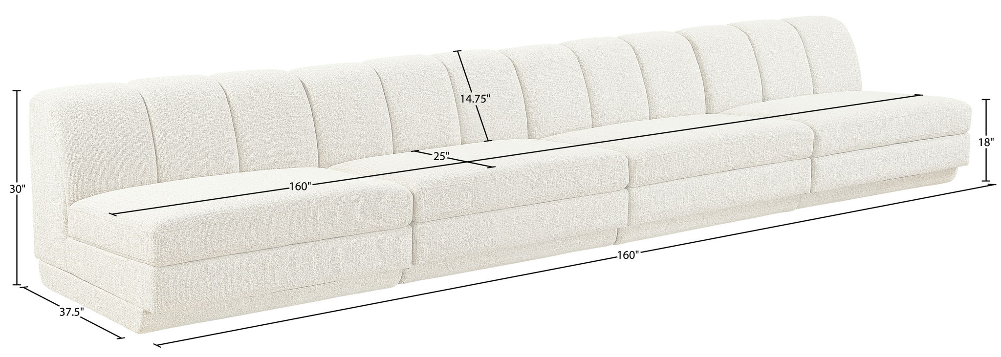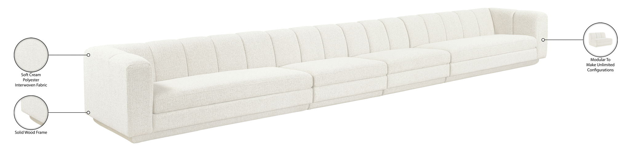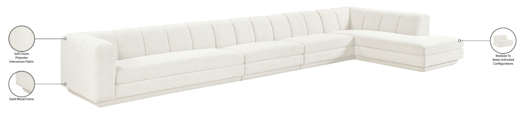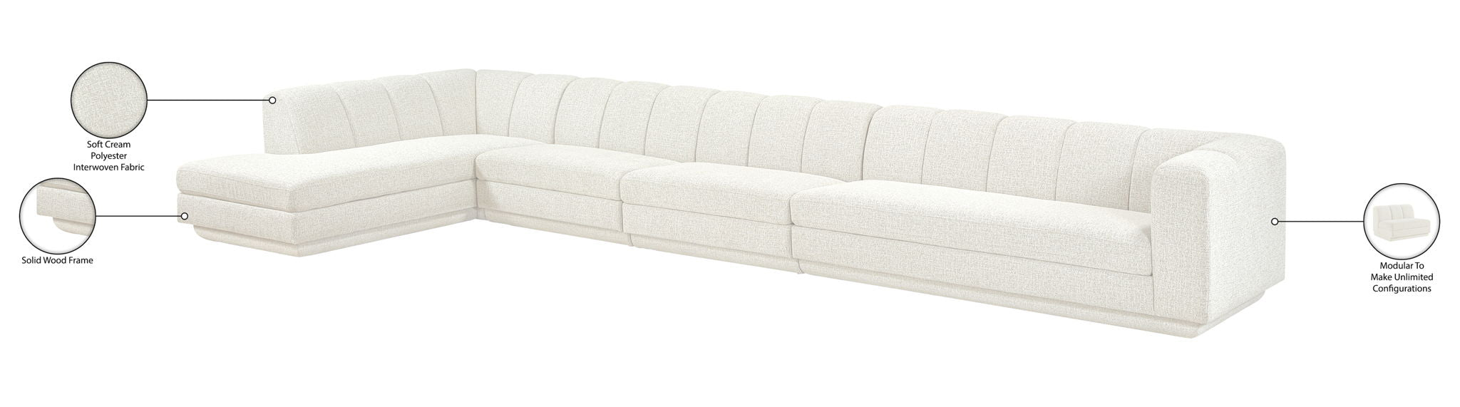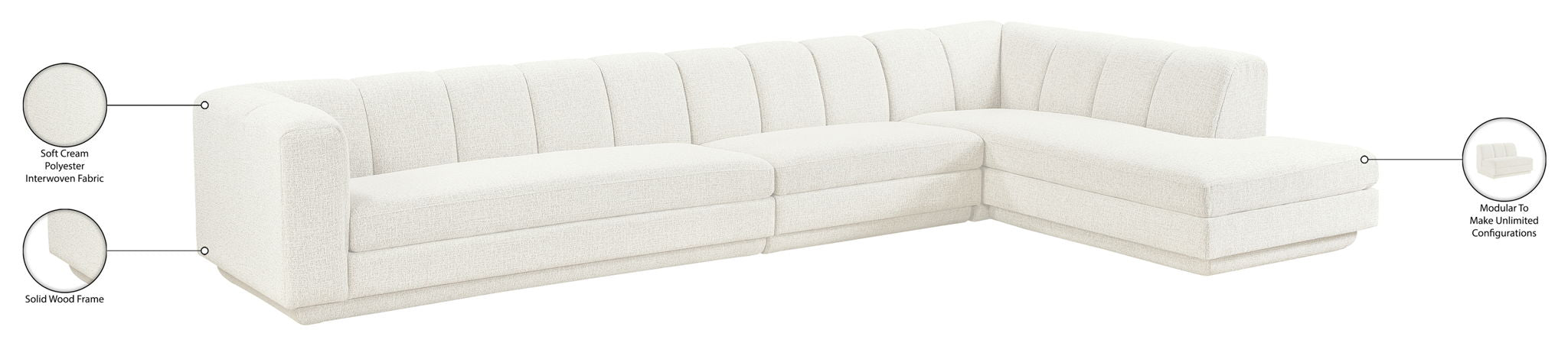 Modari - 160" Fabric Upholstered 4 Piece Modular Sofa - Cream