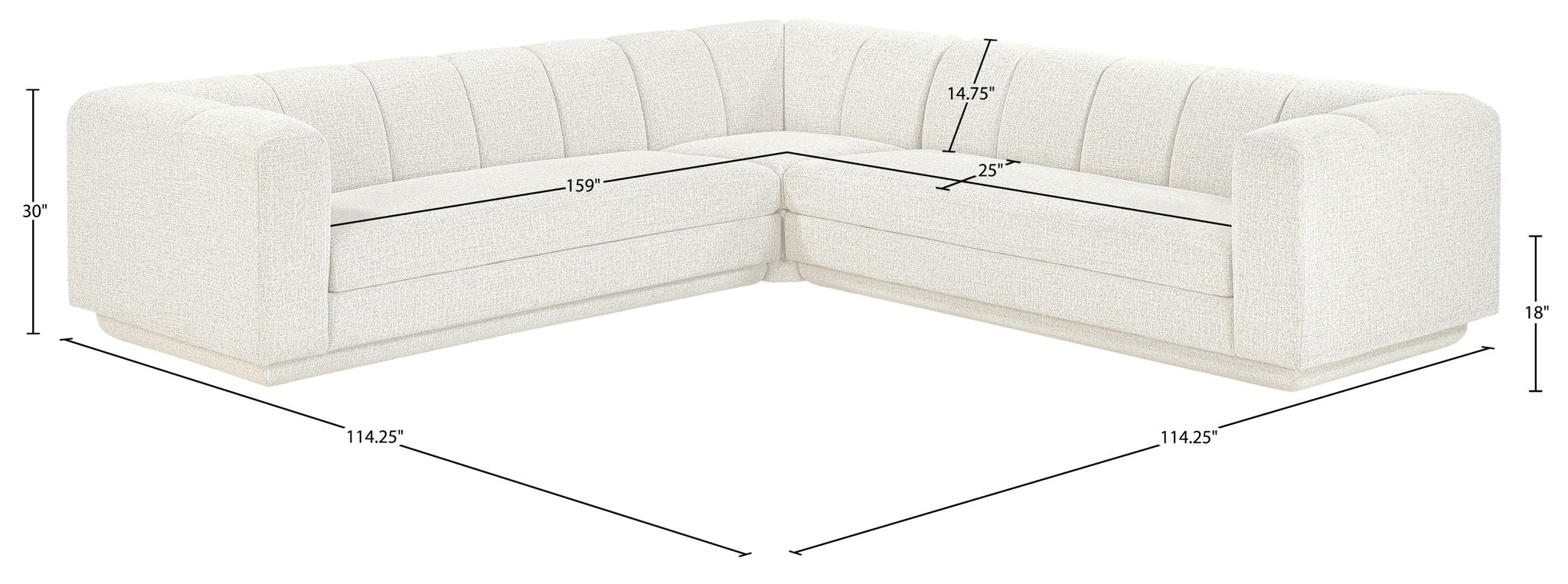 Modari - 120" Fabric Upholstered 3 Piece Modular Sofa - Cream